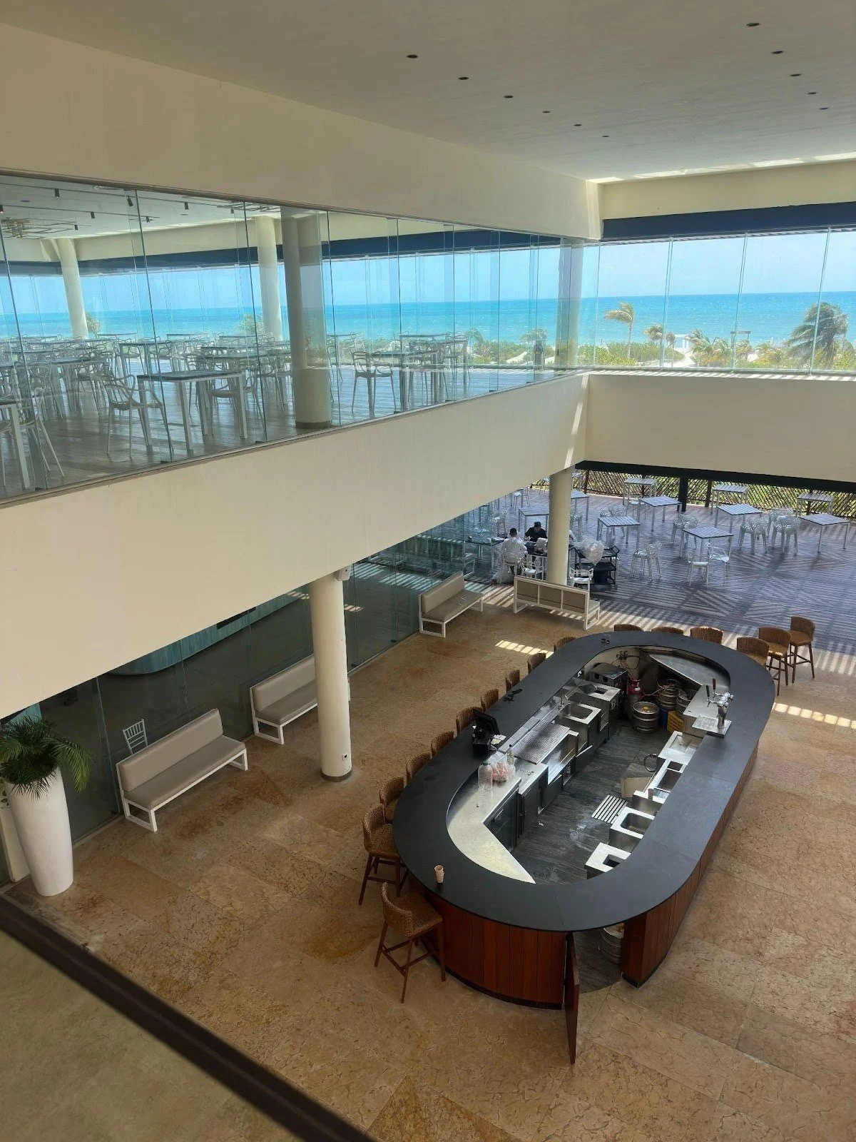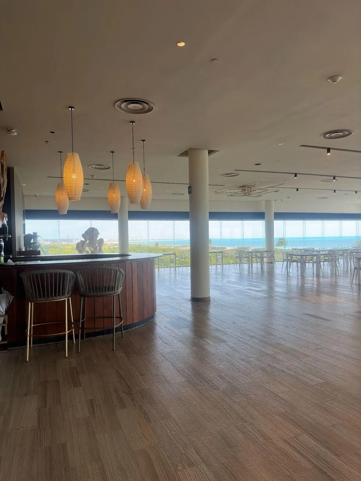 My fiance Vincent and I originally picked this venue to hold our reception. This is the Posidon 2nd floor, a beautiful indoor location surrounded by glass walls that give you a gorgeous beach view. We loved this option, as it is weather-proof, stunning, and still provides a view. Unfortunately, we realized we would likely have more guests than this venue can accommodate (~100 people) and decided to switch.
