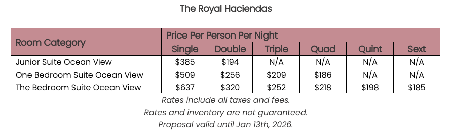 As soon as the hotels get us the rates, I’ll update this section for you. This way, you’ll have the rates and concessions for all the hotels in one spot and can easily compare.