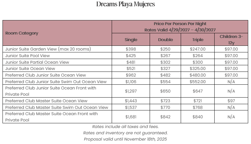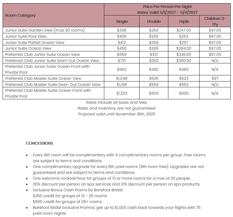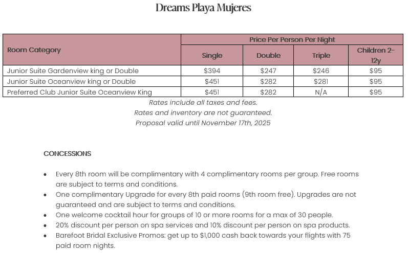As soon as the hotels get us the rates, I’ll update this section for you. This way, you’ll have the rates and concessions for all the hotels in one spot and can easily compare.