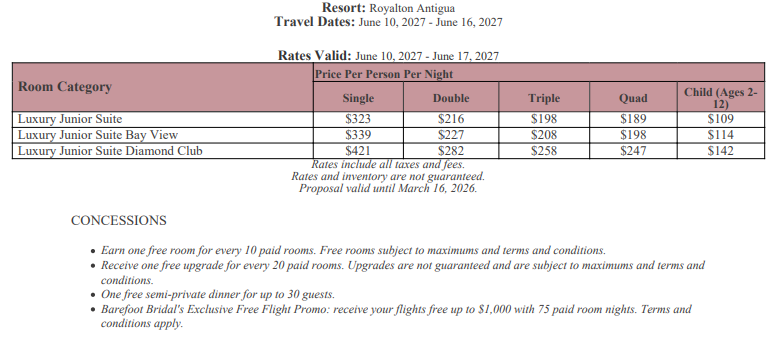 As soon as the hotels get us the rates, I’ll update this section for you. This way, you’ll have the rates and concessions for all the hotels in one spot and can easily compare.