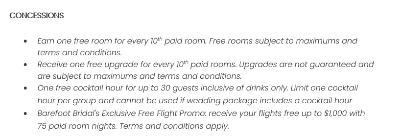 As soon as the hotels get us the rates, I’ll update this section for you. This way, you’ll have the rates and concessions for all the hotels in one spot and can easily compare.