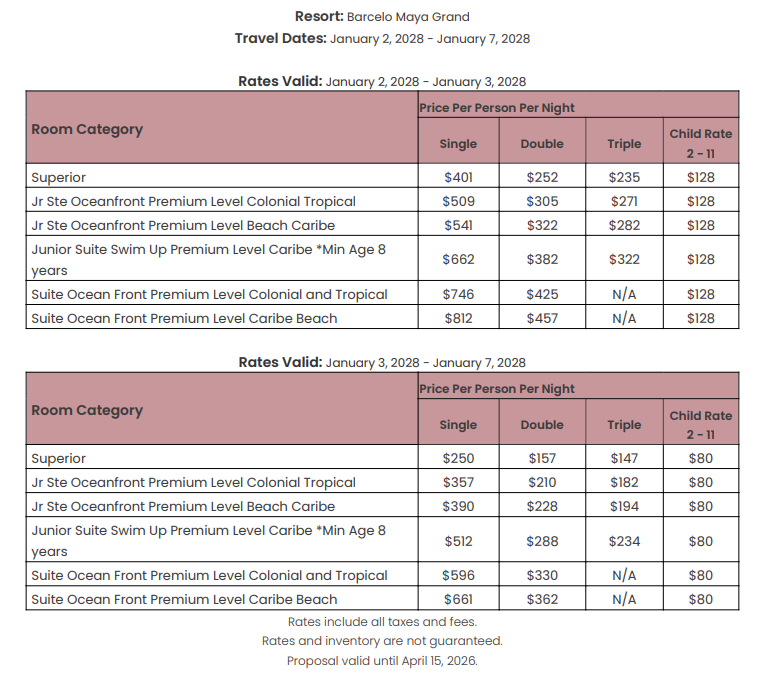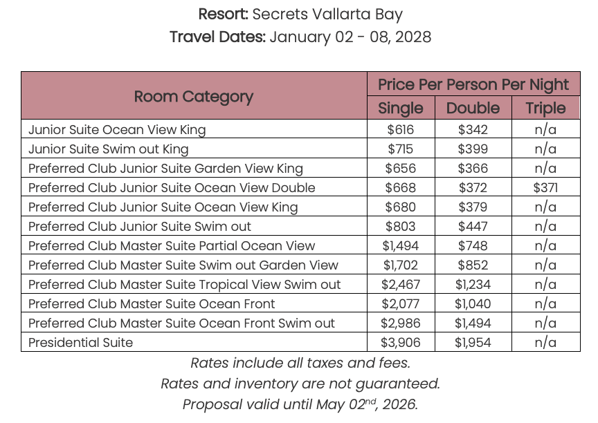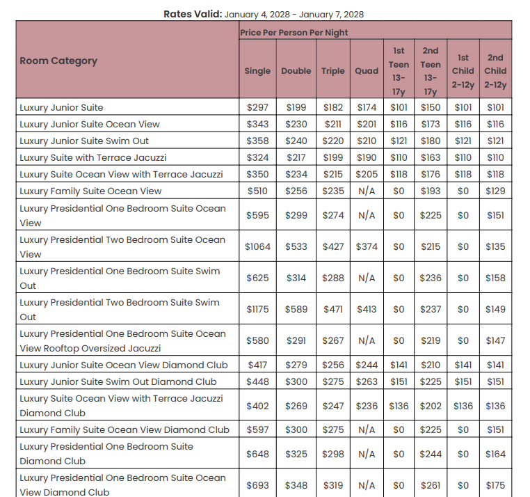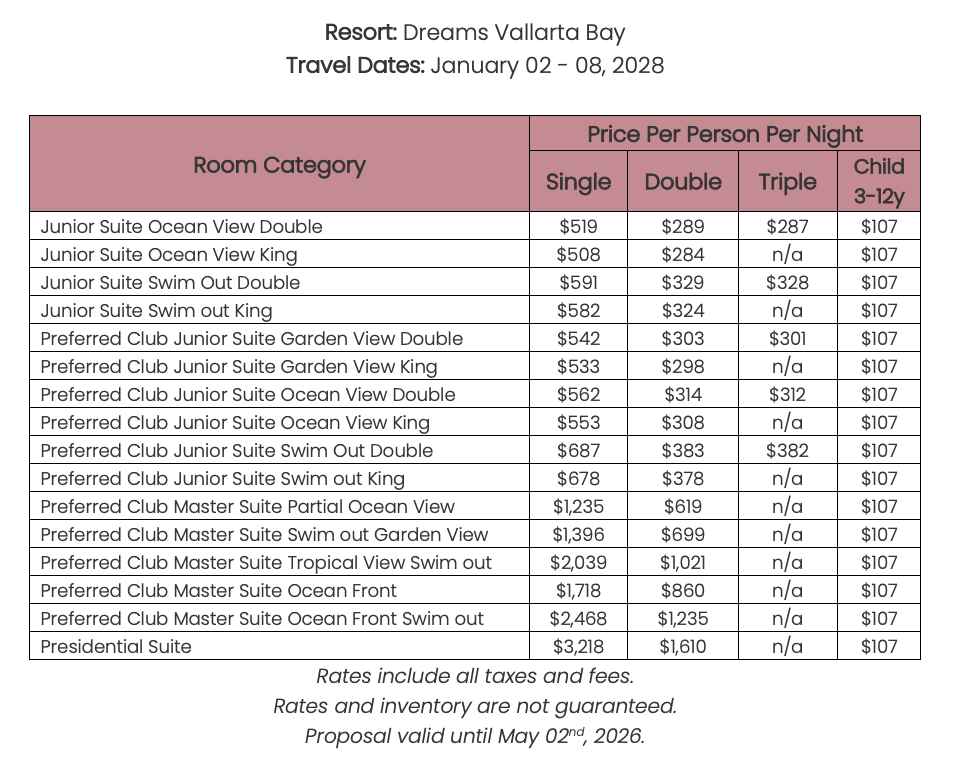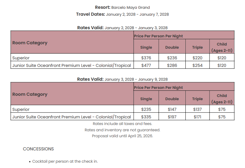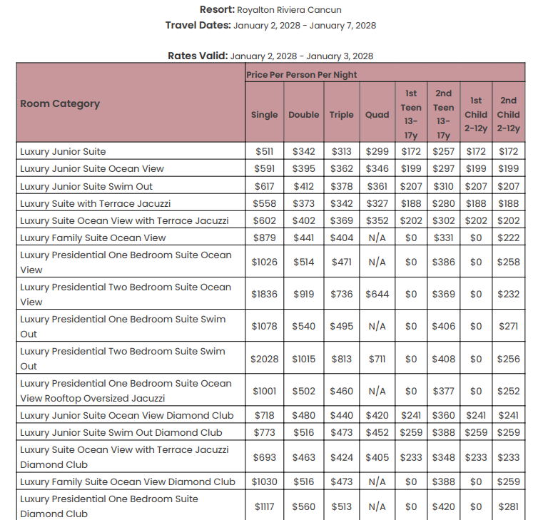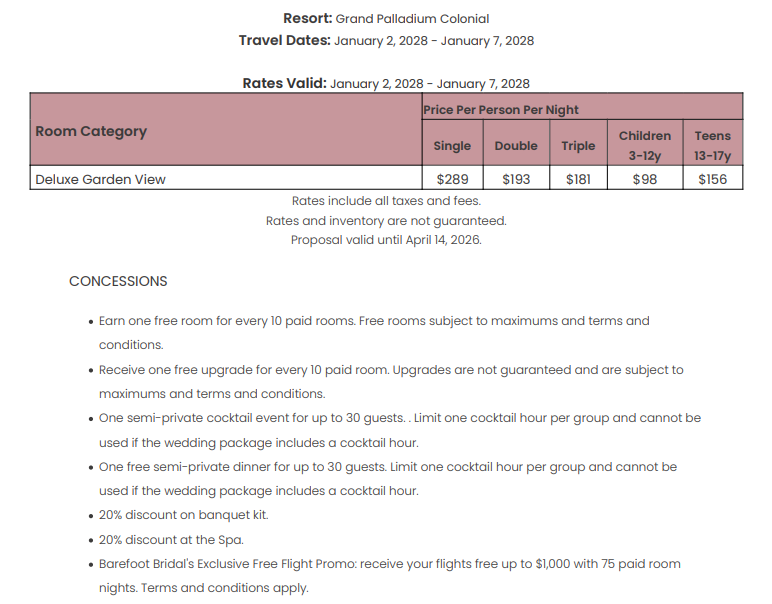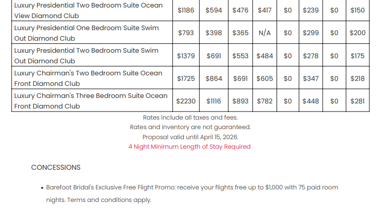 As soon as the hotels get us the rates, I’ll update this section for you. This way, you’ll have the rates and concessions for all the hotels in one spot and can easily compare.