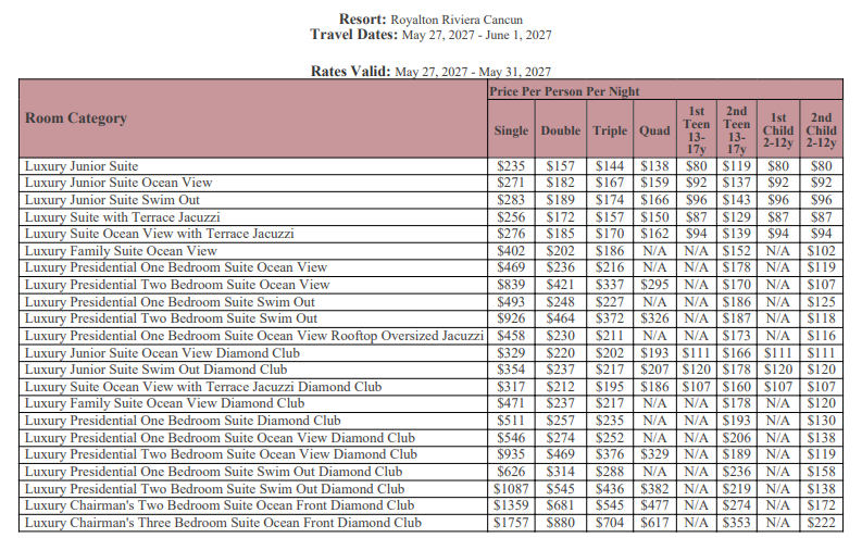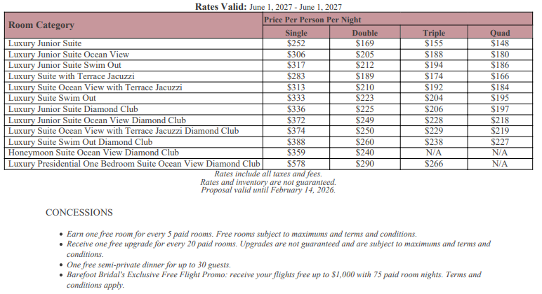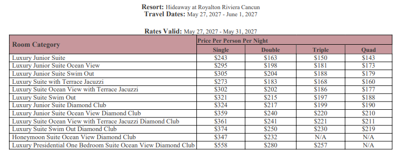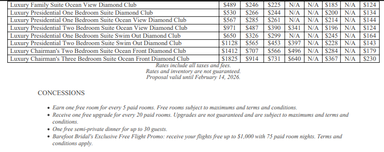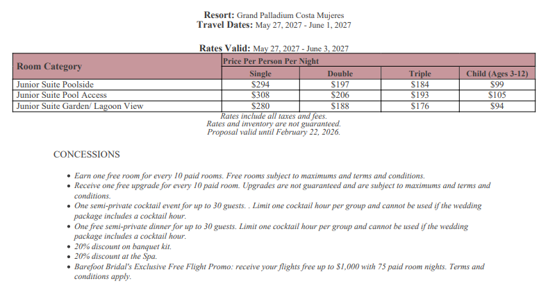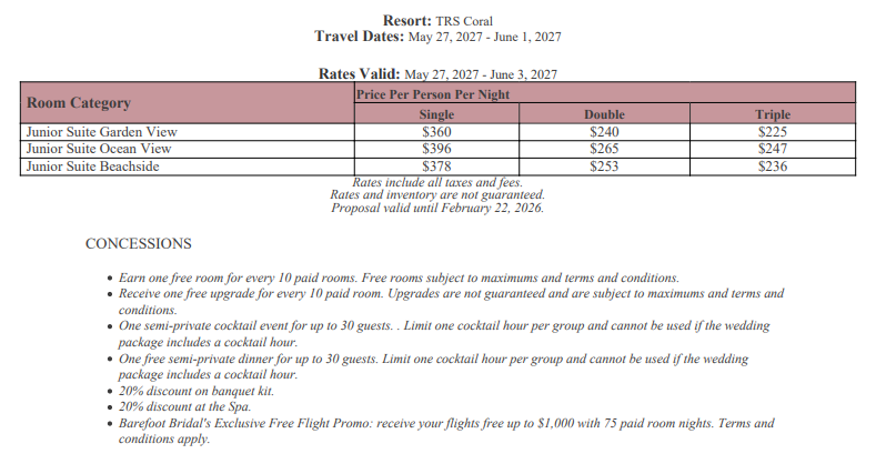 As soon as the hotels get us the rates, I’ll update this section for you. This way, you’ll have the rates and concessions for all the hotels in one spot and can easily compare.