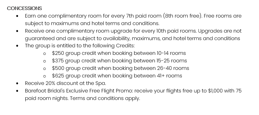 As soon as the hotels get us the rates, I’ll update this section for you. This way, you’ll have the rates and concessions for all the hotels in one spot and can easily compare.
