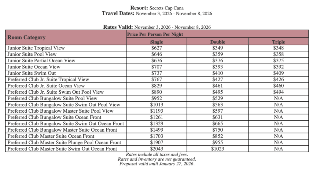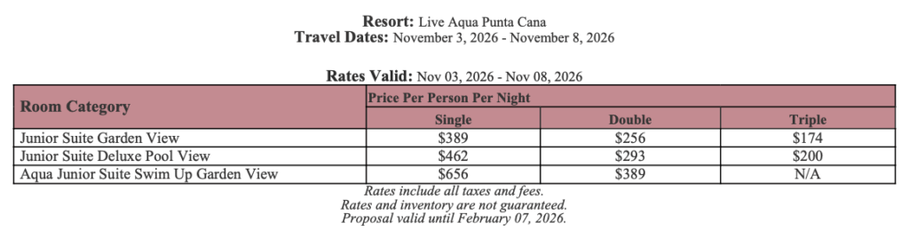As soon as the hotels get us the rates, I’ll update this section for you. This way, you’ll have the rates and concessions for all the hotels in one spot and can easily compare.