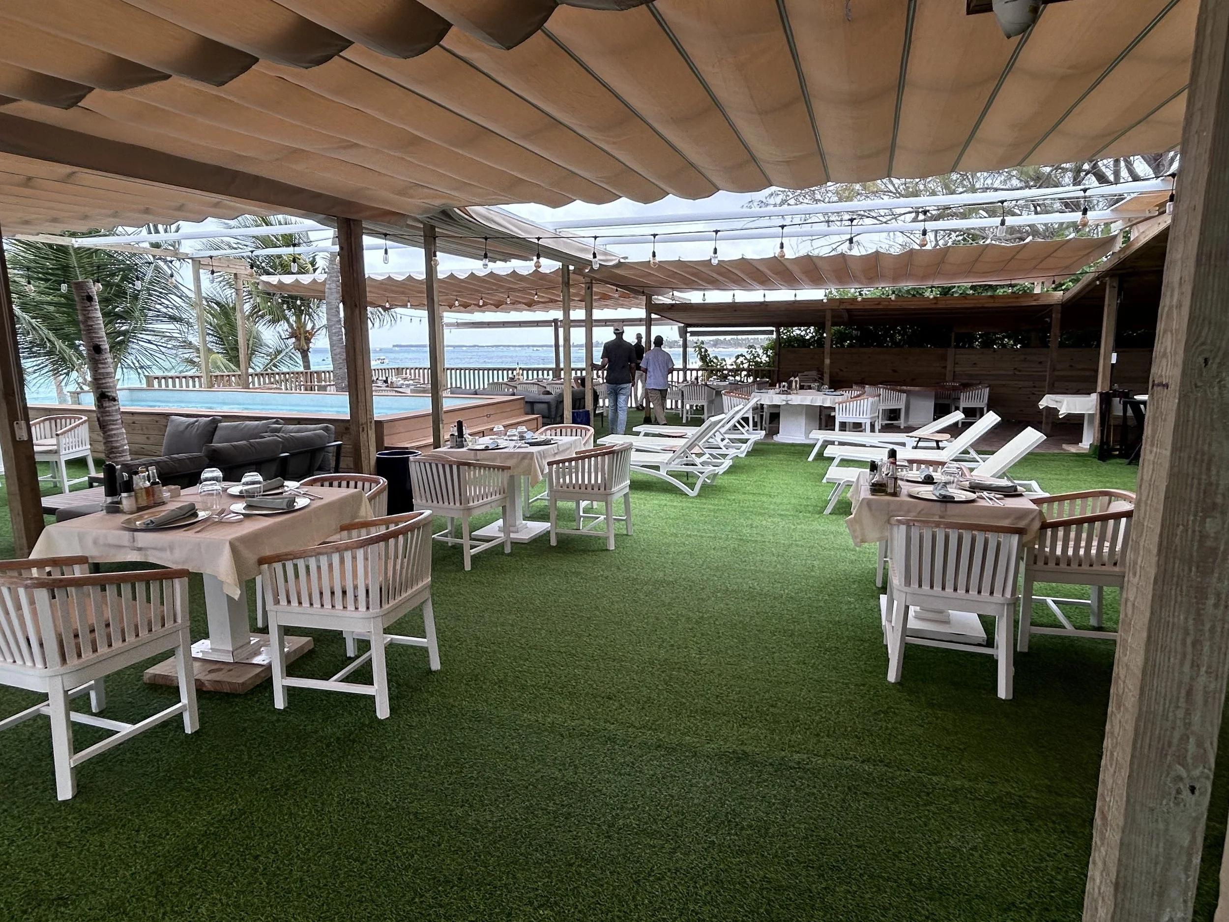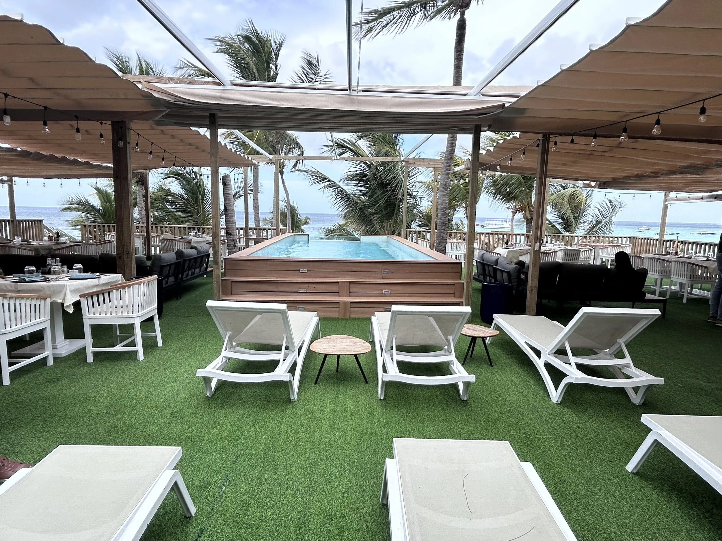 Our first venue visit was with Kukua, which has a natural beauty to it. Upon our arrival, we were given champagne. We unfortunately did not have the pleasure of meeting Rachel, who everyone raves about, as she was on vacation. Instead, we met with someone else, whose name we did not catch (I know, we suck! Sorry!), but he was very nice and informative. The bridal suite was very spacious and you could comfortably fit at least 10 people. The dinner and reception area are outside next to the pool. We were advised that the pool could be used during the wedding, but that you must bring your own towels. Bathing suits can be stored in the bridal suite or in the Palapa, where the groom gets ready. There is a love sign with a white circular dance floor in front of it that comes with the venue. We personally thought the dance floor was on the smaller side and if you choose this venue, you should inquire about upgrading to a larger size. We liked this venue because everything that is part of the beach club, in terms of lounge chairs and canopy beds is included. So, your guests can have another place to relax and hangout during the reception. The Palapa is a second place that is offered for the ceremony, which is a wooden structure that offers shade. Our only critique was the lack of natural breeze, which was surprising considering this venue is on the beach.