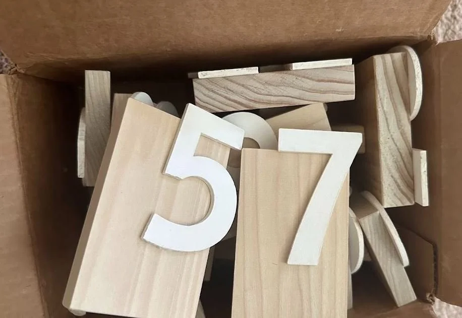 Pro Tip: Look on facebook marketplace for gently used wedding decor that you can pack or ship. I had purchased table numbers from facebook marketplace for $20 (20 wooden signs were included)