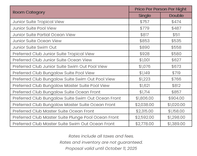 As soon as the hotels get us the rates, I’ll update this section for you. This way, you’ll have the rates and concessions for all the hotels in one spot and can easily compare.
