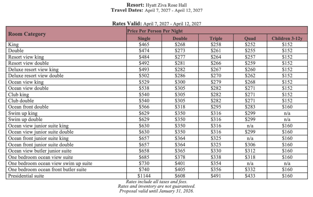 As soon as the hotels get us the rates, I’ll update this section for you. This way, you’ll have the rates and concessions for all the hotels in one spot and can easily compare.