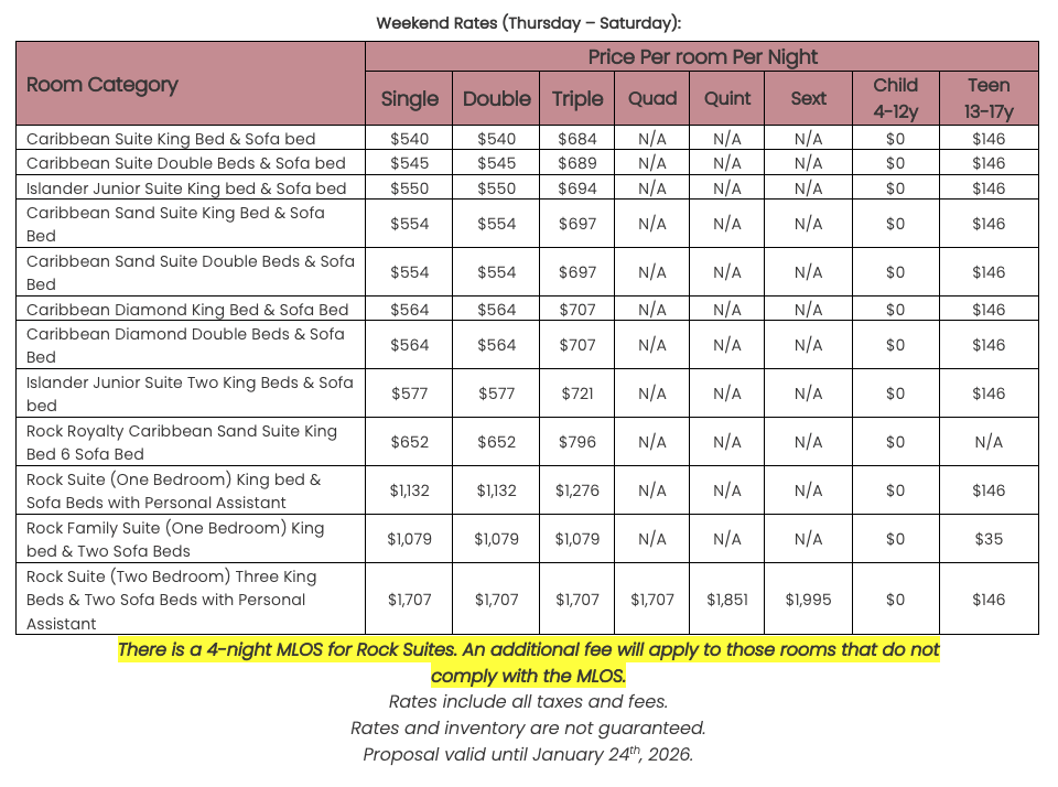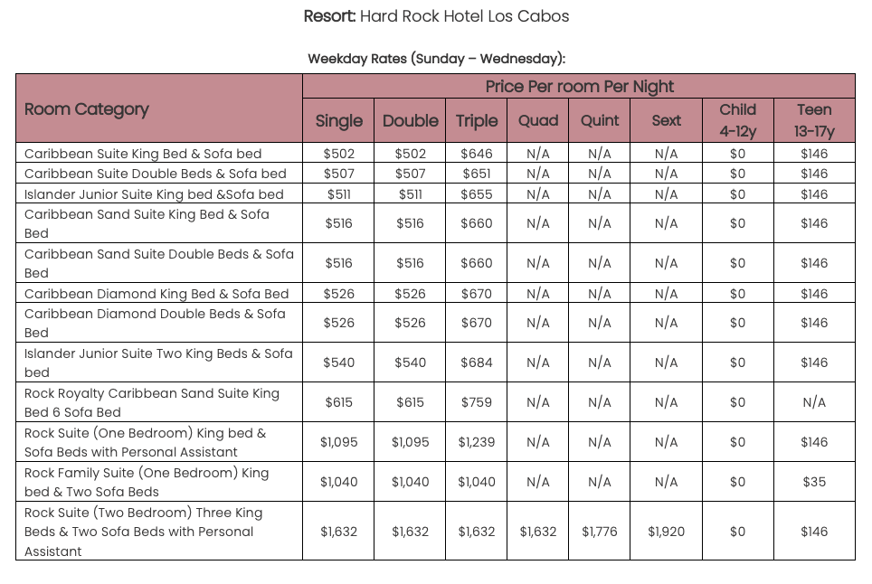 As soon as the hotels get us the rates, I’ll update this section for you. This way, you’ll have the rates and concessions for all the hotels in one spot and can easily compare.