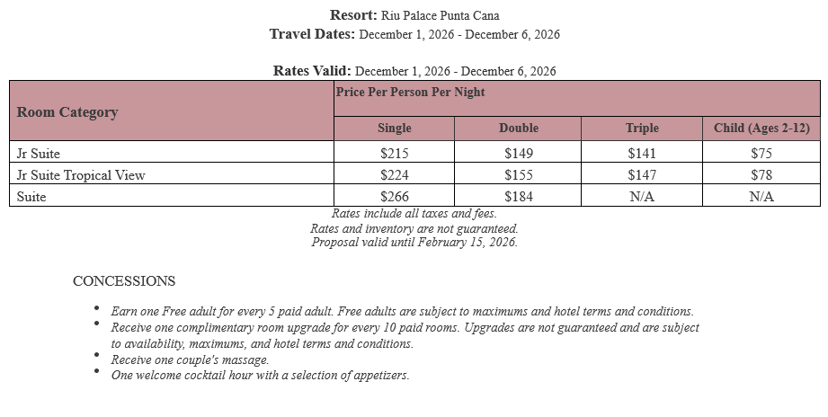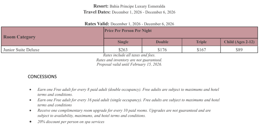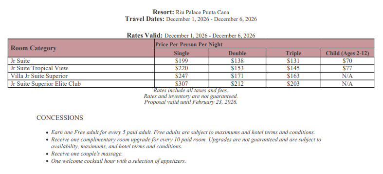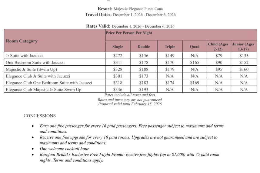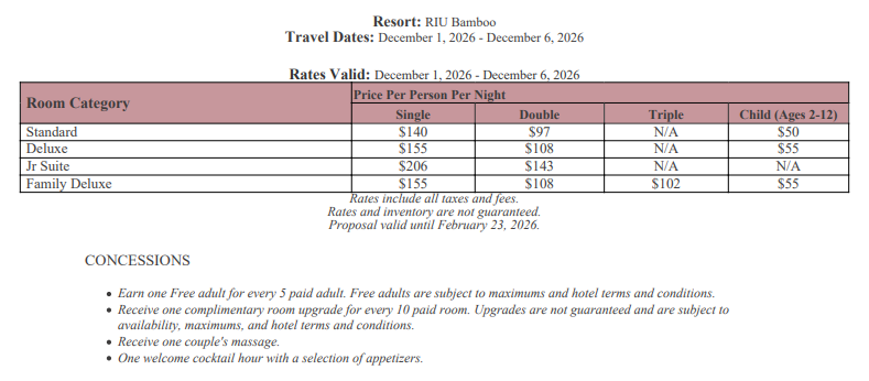 As soon as the hotels get us the rates, I’ll update this section for you. This way, you’ll have the rates and concessions for all the hotels in one spot and can easily compare.