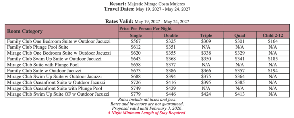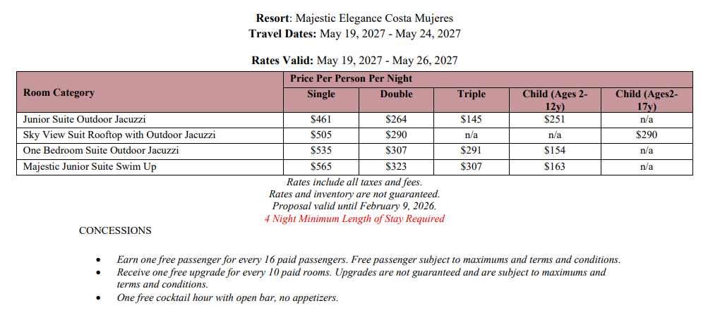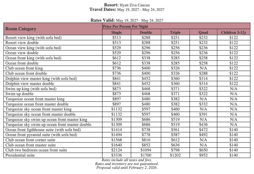 As soon as the hotels get us the rates, I’ll update this section for you. This way, you’ll have the rates and concessions for all the hotels in one spot and can easily compare.
