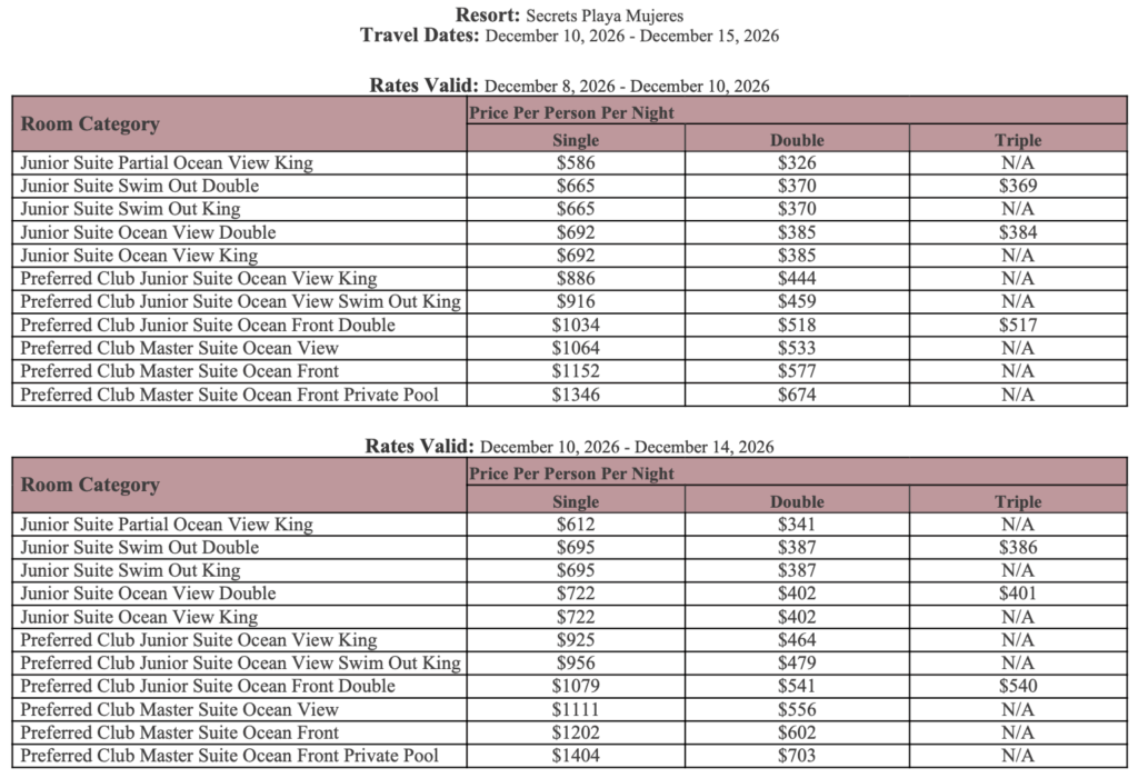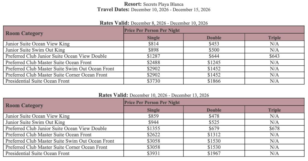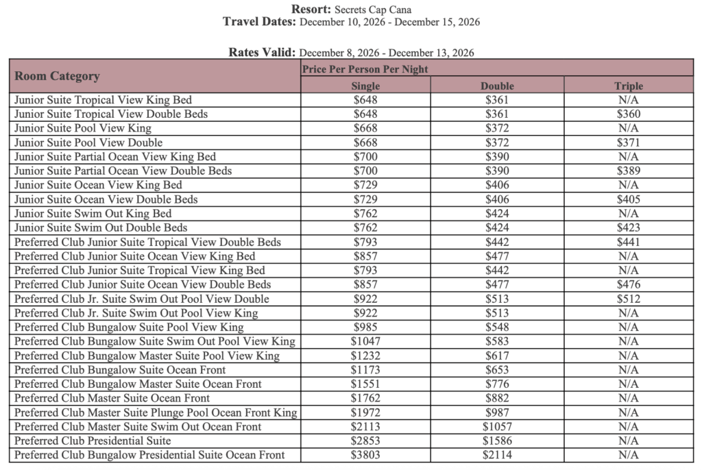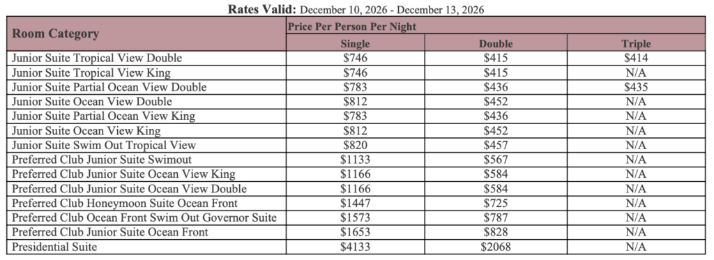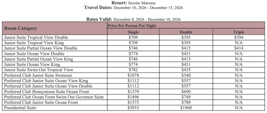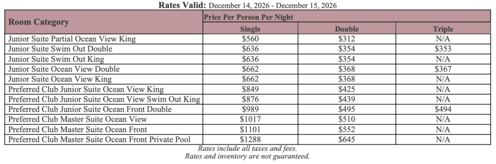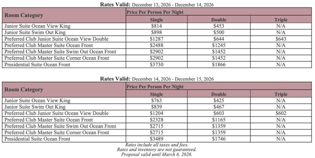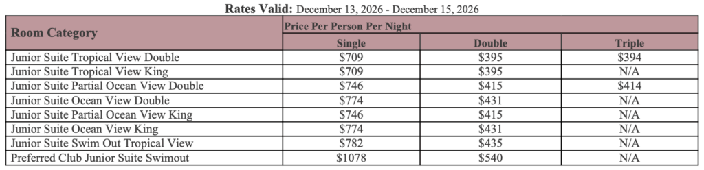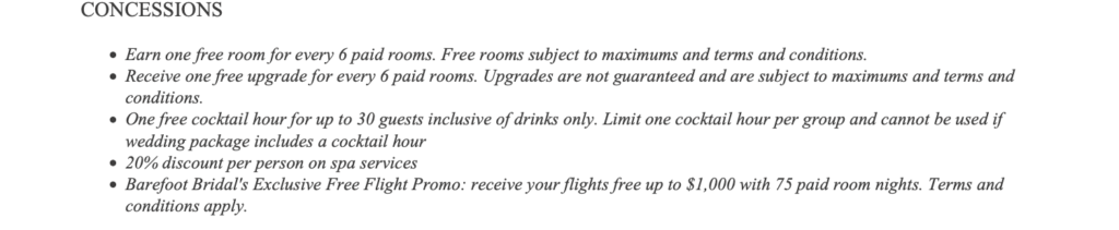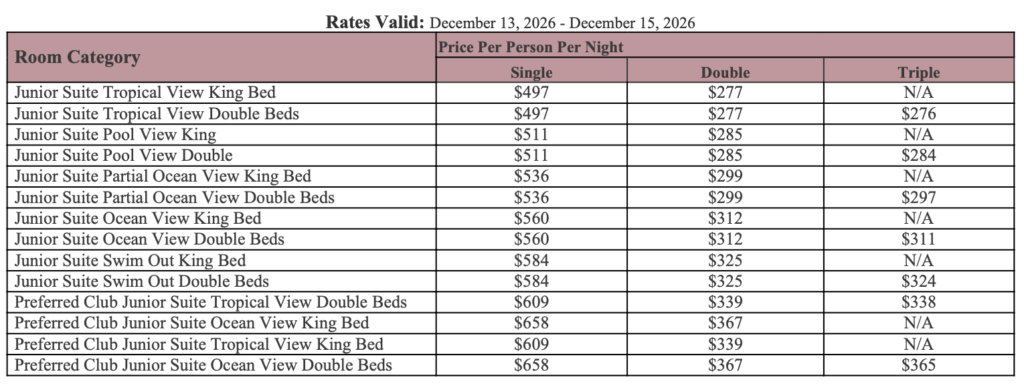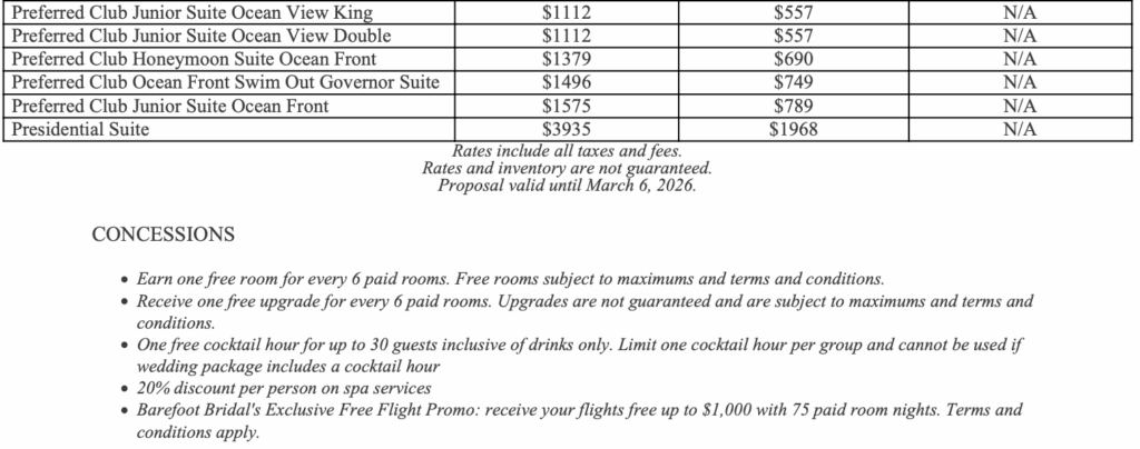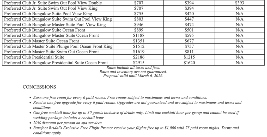 As soon as the hotels get us the rates, I’ll update this section for you. This way, you’ll have the rates and concessions for all the hotels in one spot and can easily compare.