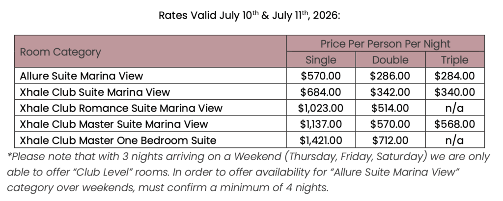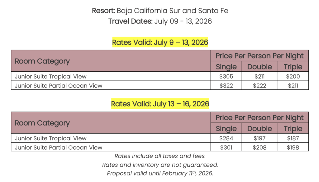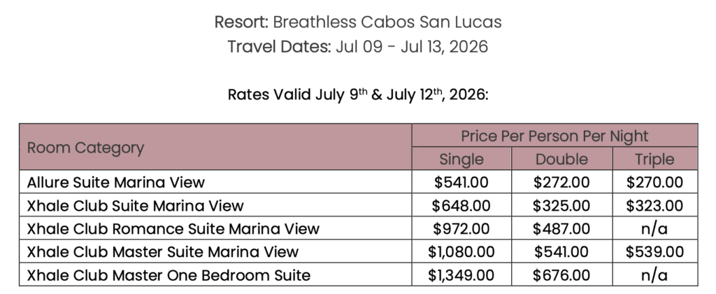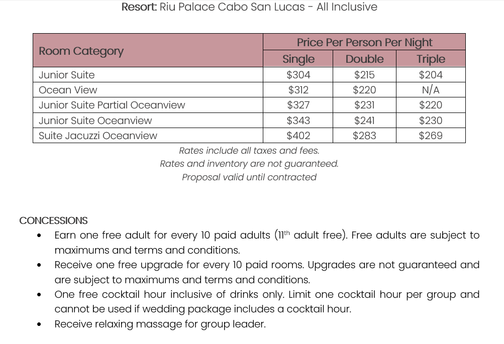 As soon as the hotels get us the rates, I’ll update this section for you. This way, you’ll have the rates and concessions for all the hotels in one spot and can easily compare.