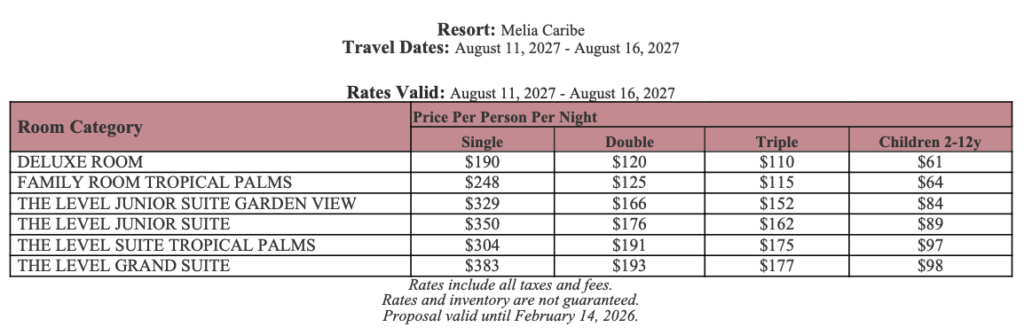 As soon as the hotels get us the rates, I’ll update this section for you. This way, you’ll have the rates and concessions for all the hotels in one spot and can easily compare.