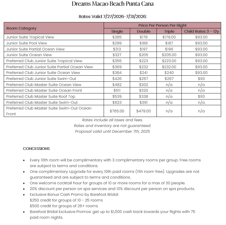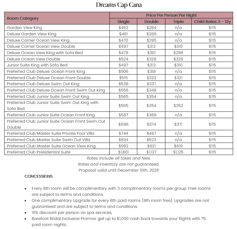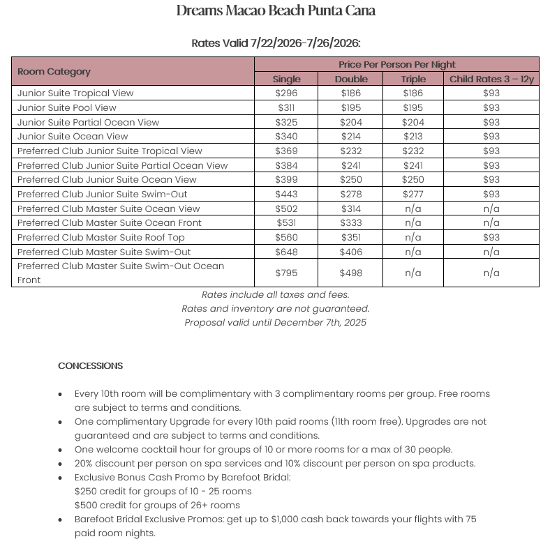 As soon as the hotels get us the rates, I’ll update this section for you. This way, you’ll have the rates and concessions for all the hotels in one spot and can easily compare.