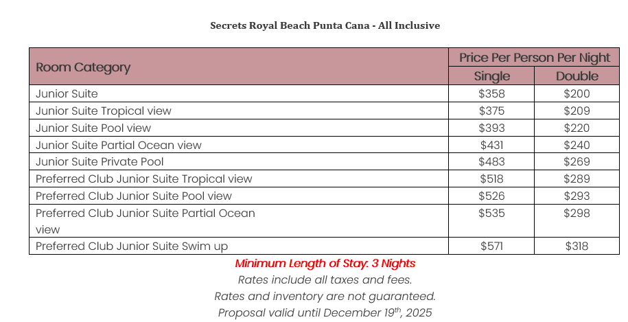 •Secrets Royal Beach Punta Cana – All Inclusive