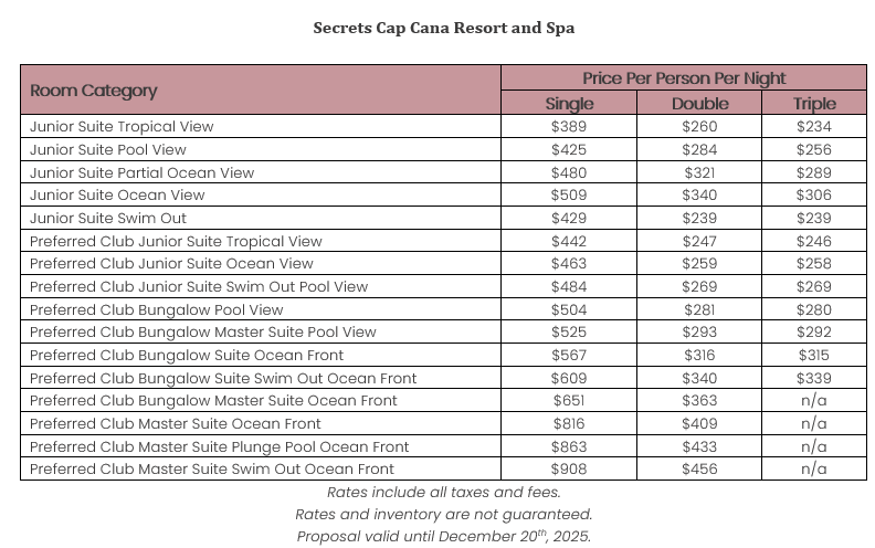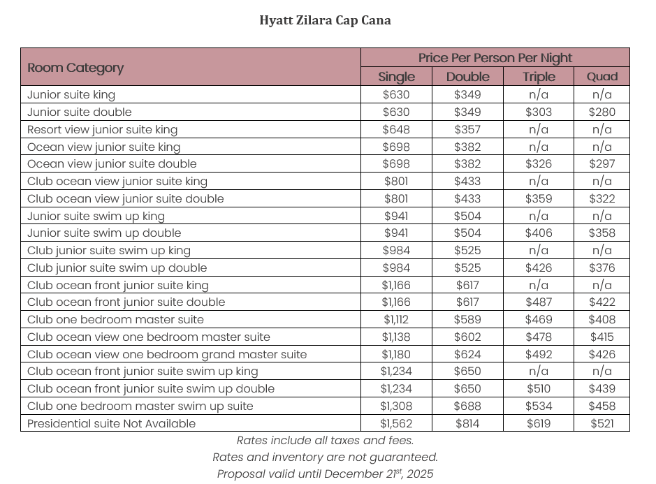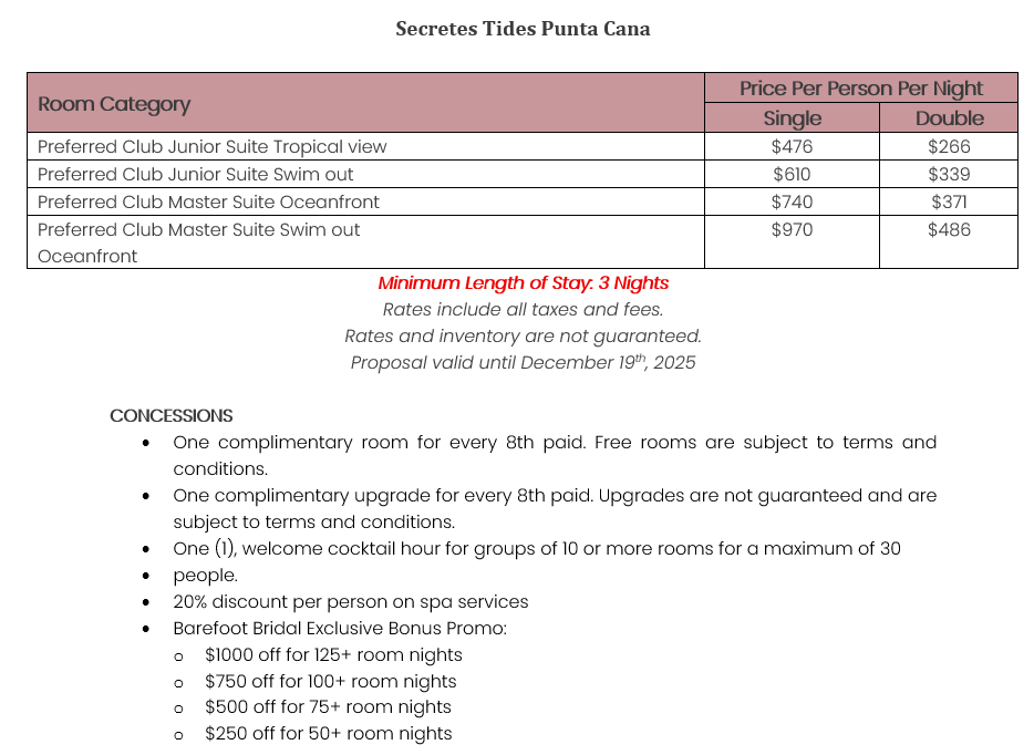 As soon as the hotels get us the rates, I’ll update this section for you. This way, you’ll have the rates and concessions for all the hotels in one spot and can easily compare.