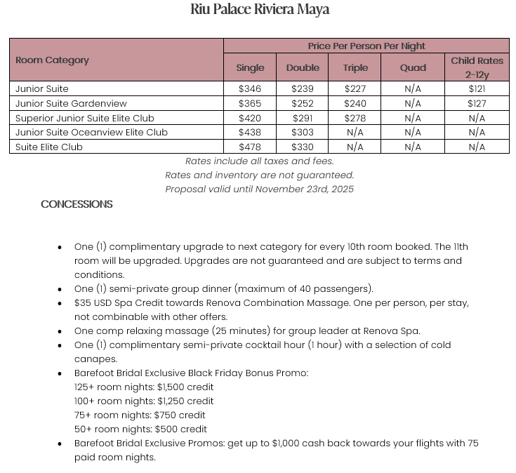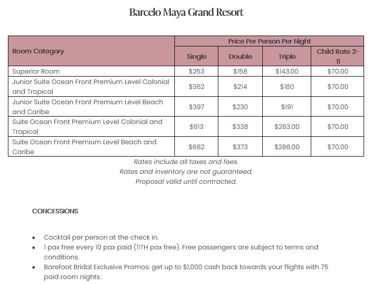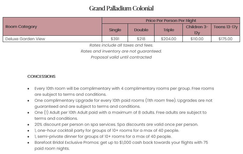 As soon as the hotels get us the rates, I’ll update this section for you. This way, you’ll have the rates and concessions for all the hotels in one spot and can easily compare.