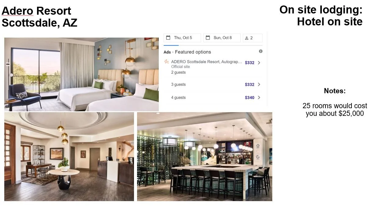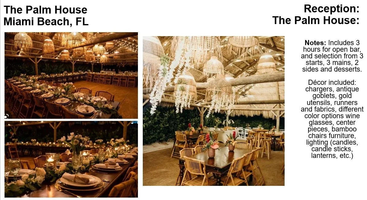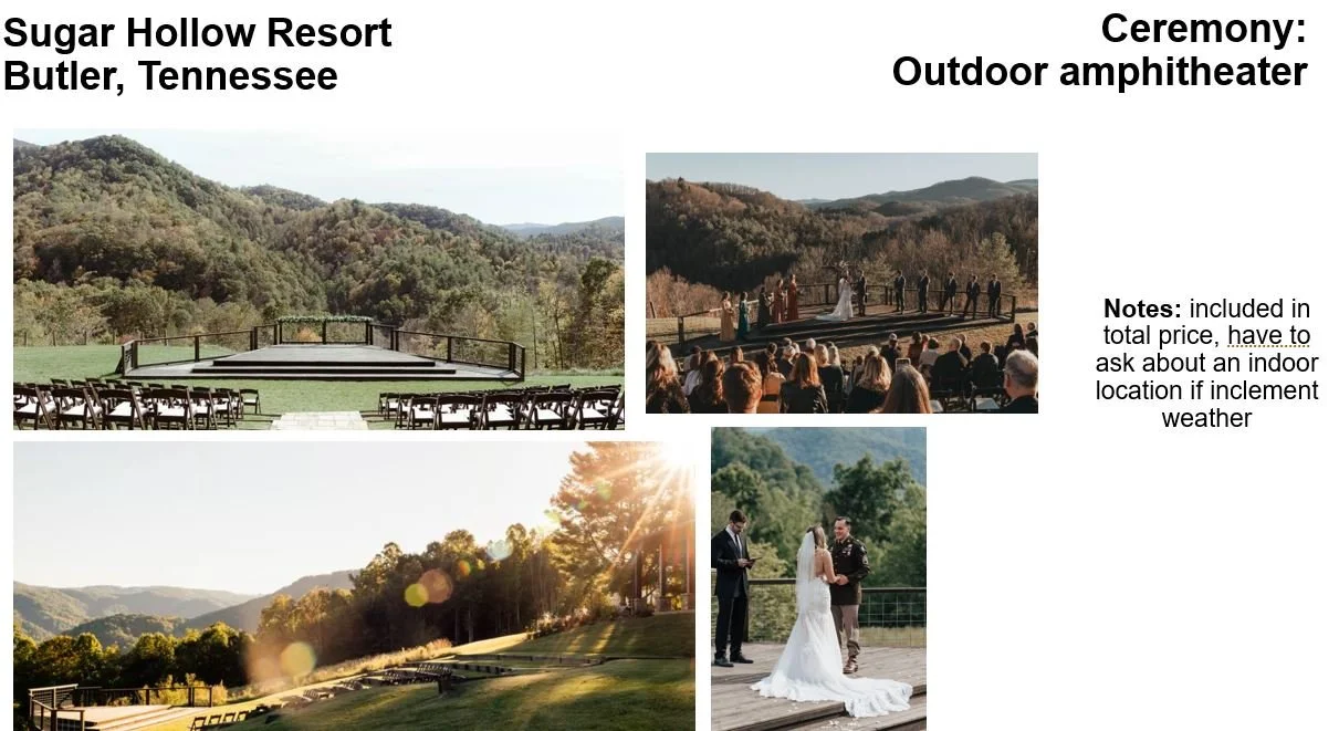 I told her our budget and top 3 location options and she made a powerpoint based on 1-2 resorts in each location. During this presentation she gave information about the following: