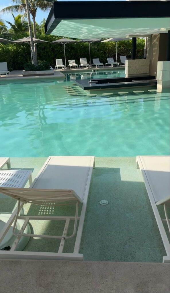 The main pool area is huge, with swim-up bars, plenty of lounge space, upbeat music, and a fun but classy crowd. I’d describe the vibe as: cool, trendy, 30s–40s crowd, wellness meets luxury.
