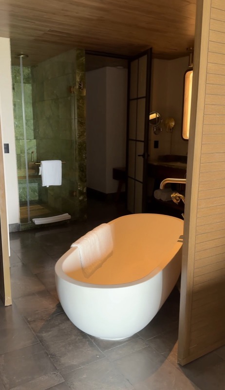 Every room has this gorgeous arched, modern-Mexican design, blending warm tones, organic textures, and elevated finishes that scream luxury. The bathroom? Unbelievable. If you’re a stickler for good bathroom lighting (hello fellow content creators) Atelier gets it right.