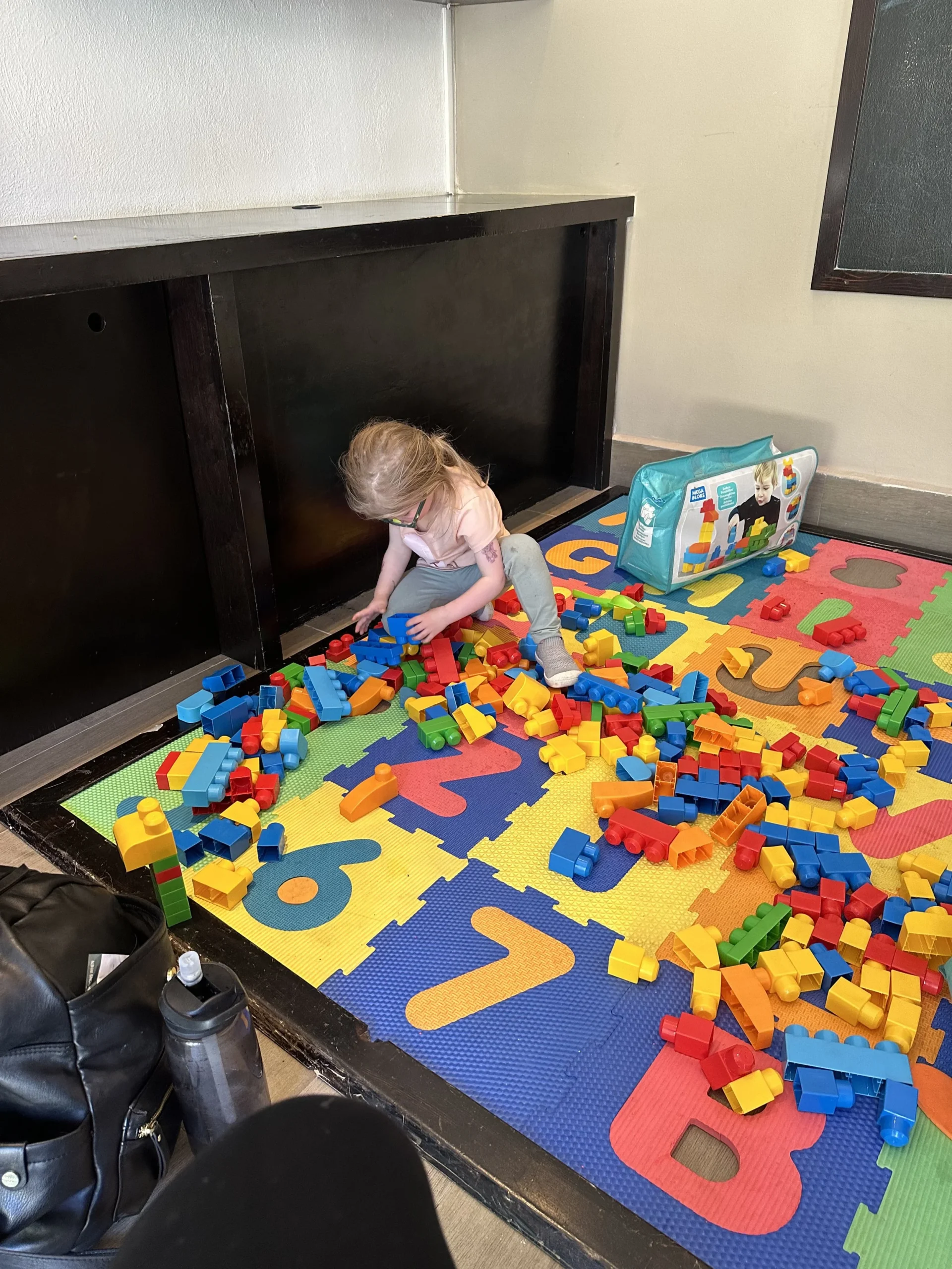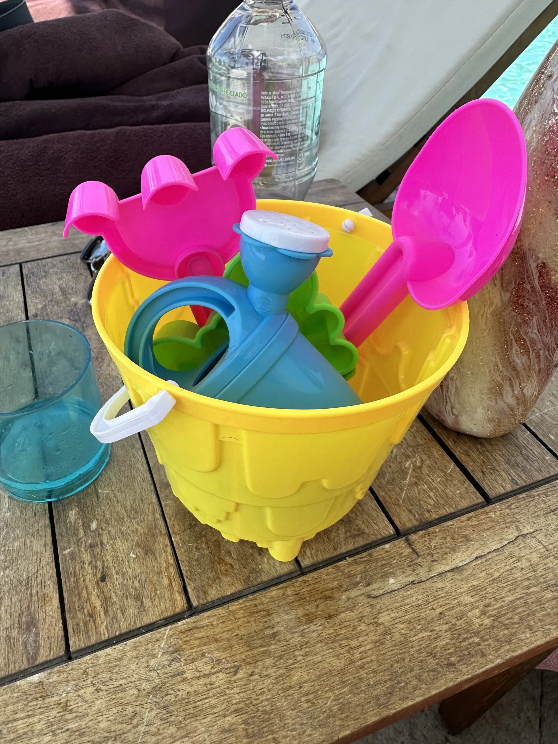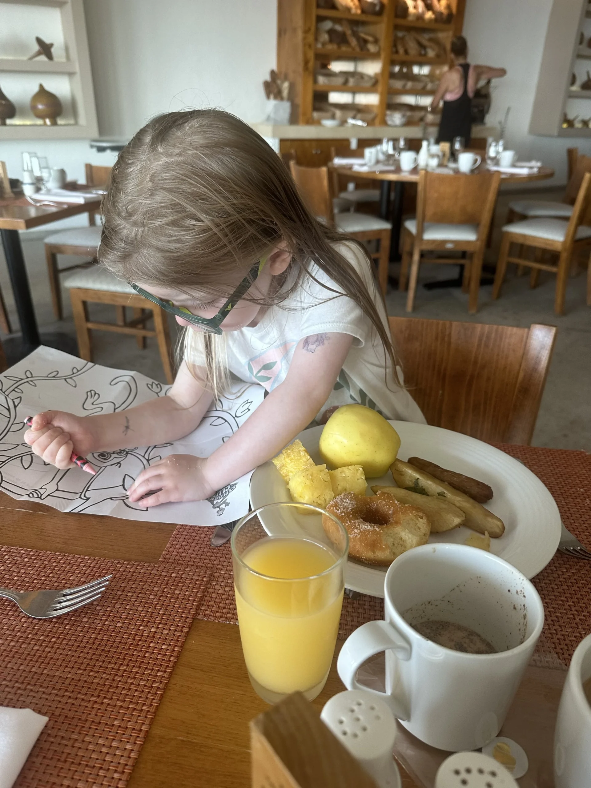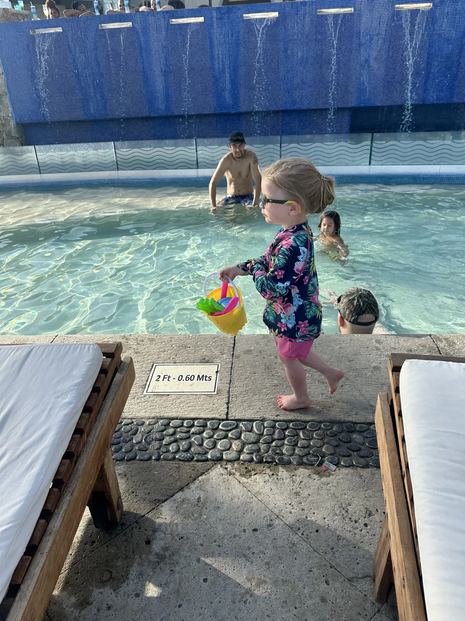 Speaking of the gift shop, every day they set up a little area right by the family pool with beach and pool related items like toys, floats, sunscreen, beach toys, etc. This is genius because we had a toddler with us, but no toys packed for her. She was pleased as could be to just be in the pool all day, but at one point I went and got her some beach toys (bucket, shovel, etc.) and she was as content as could be in the sand for the rest of the afternoon. It saved me from walking all the way to the gift shop. You can charge it to your room if you left a card on file at check-in or you can use Apple Pay! Photos below of my god daughter playing with her toys, coloring during breakfast, and playing in the Preferred Club Lounge while we waited for our room to be ready. Note: they would not allow us adults to stay with her at the Explorer’s Club which was a really big bummer since we had gotten her so excited for the splash pad.