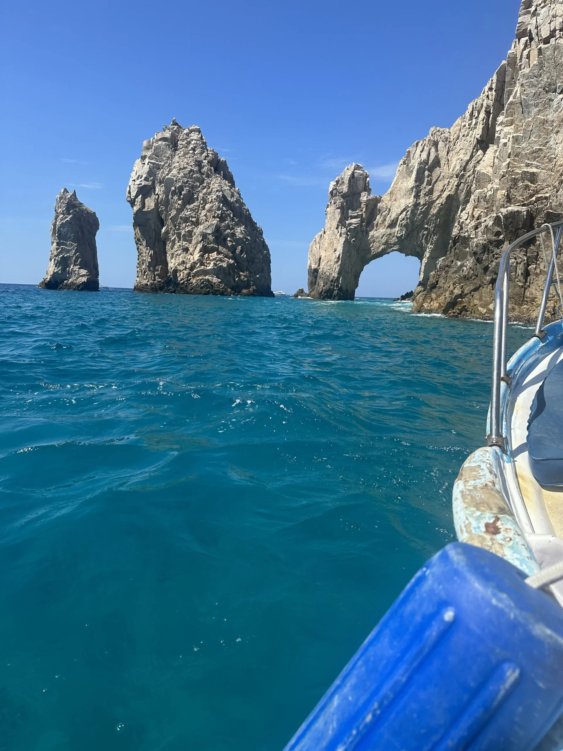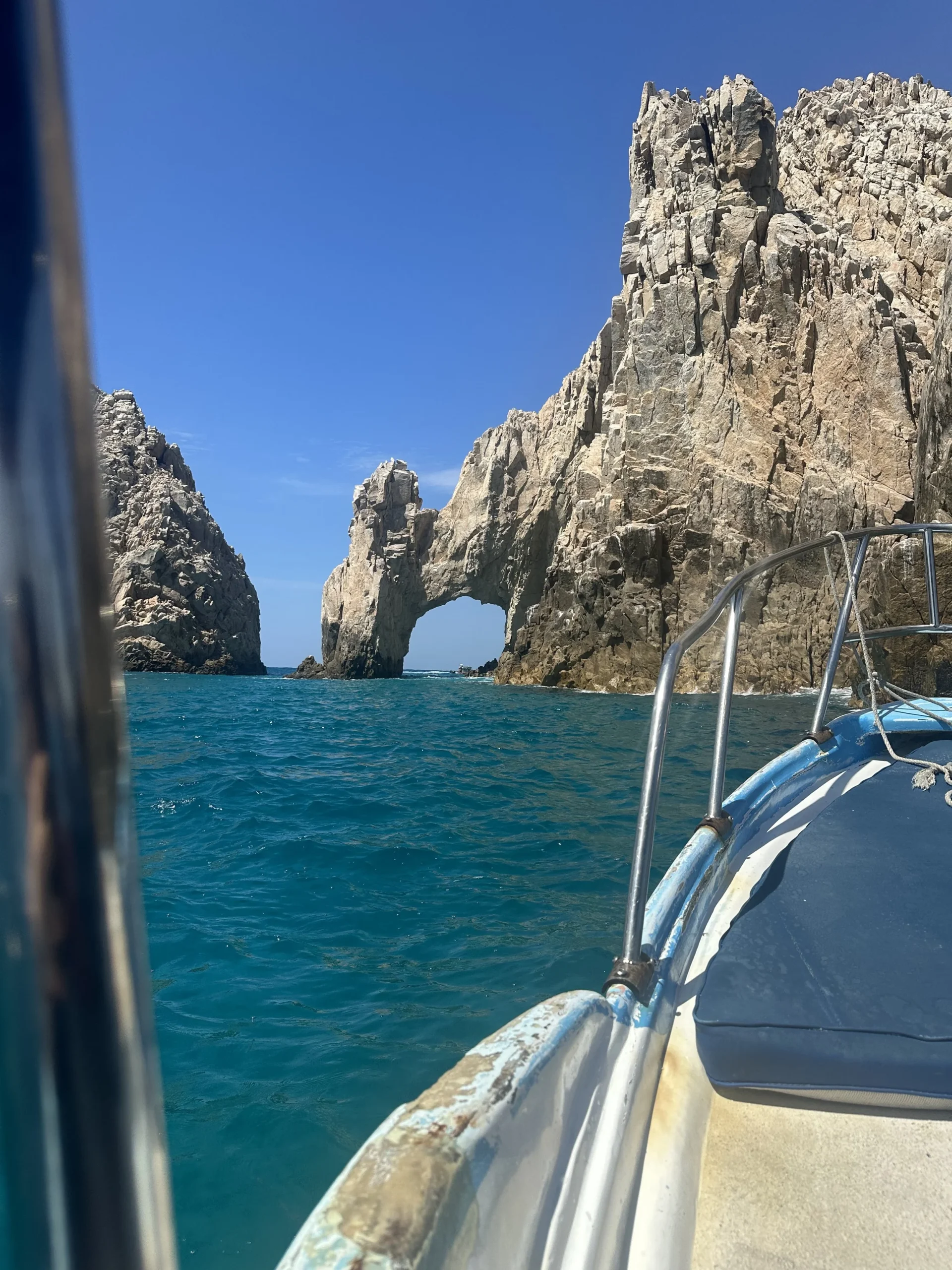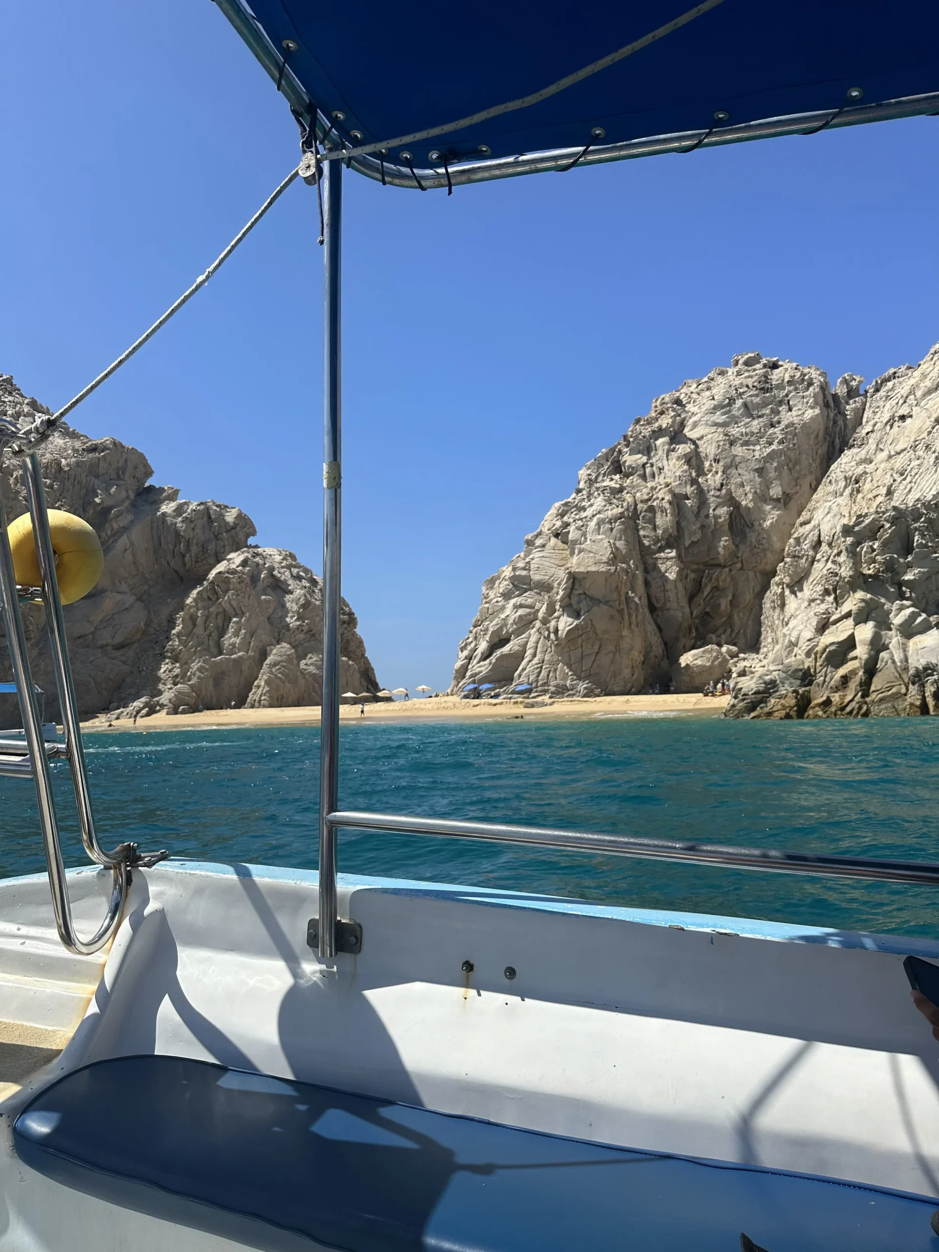 We did, however, take an excursion with Cabo Paradise Tours with an Amazing Captain a glass bottom boat, Chicago (note: the glass bottom is a rectangle in the middle of the boat). It was a 45-minute boat tour of the famous Arch, lover’s beach, and divorce beach, and at the end they dropped us off at a swimmable beach. I loved, loved this tour! This was probably our favorite part overall. The ocean is so, so clear, you can see all the tropical fish swimming around even without the glass bottom. We saw sea lions asleep on the rocks in the ocean, pelicans swimming alongside us, a sea lion swimming around. The arch is so beautiful in person and the swimmable beach had clear, calm waters and golden sand. I highly recommend doing this excursion. To get back from the beach, we ordered an Uber and it cost us, with a tip, $15 to get back to the hotel.