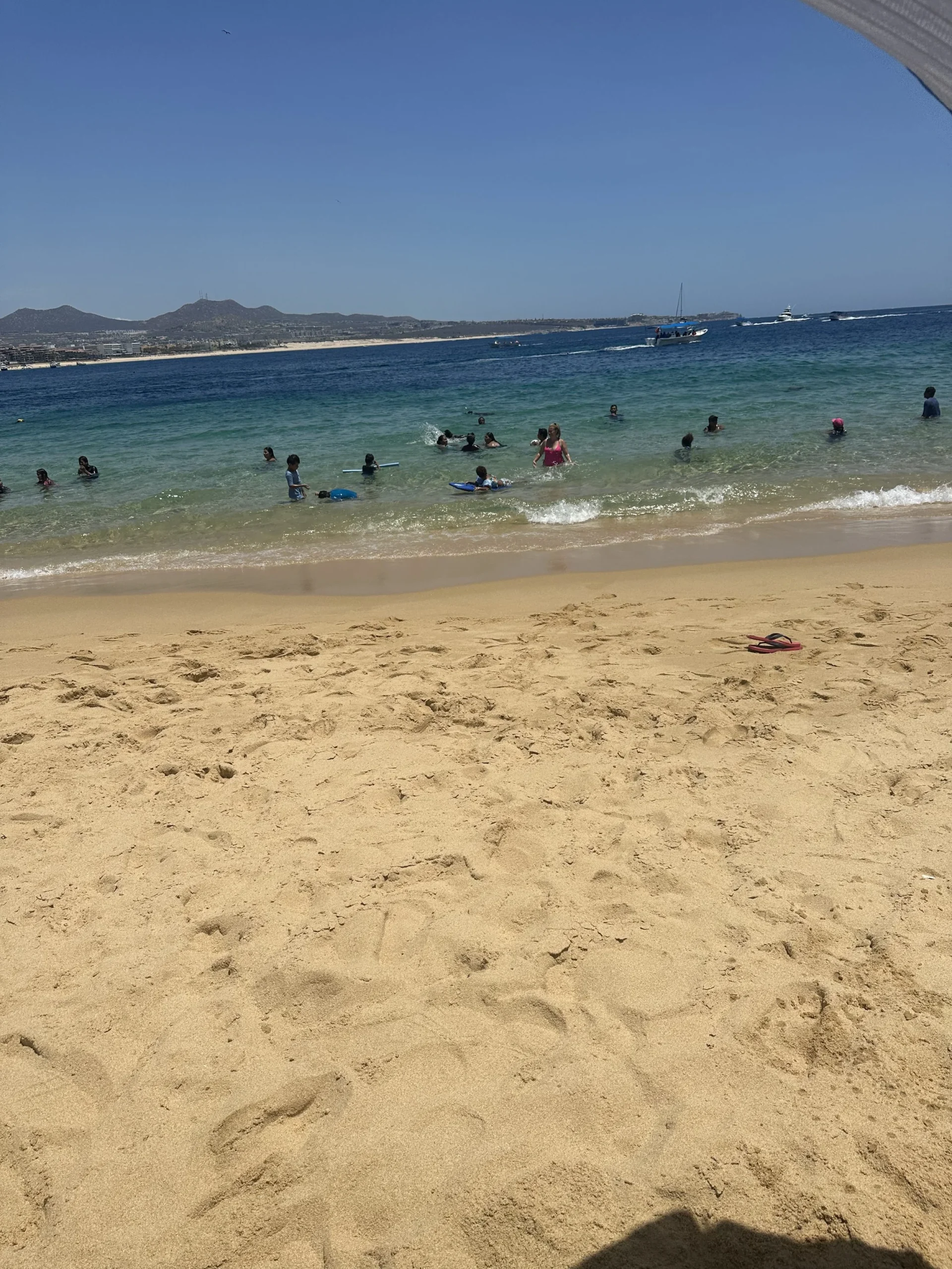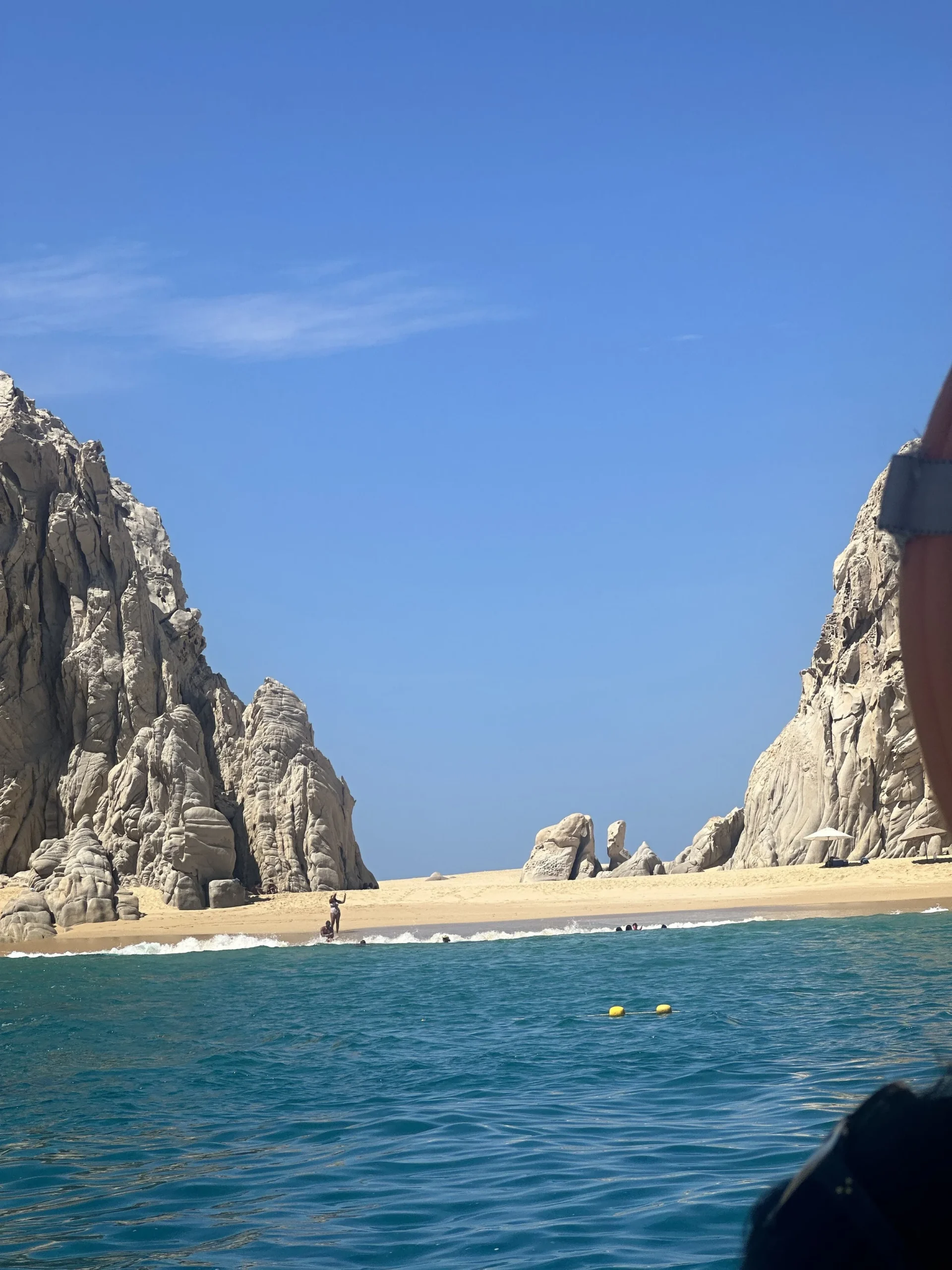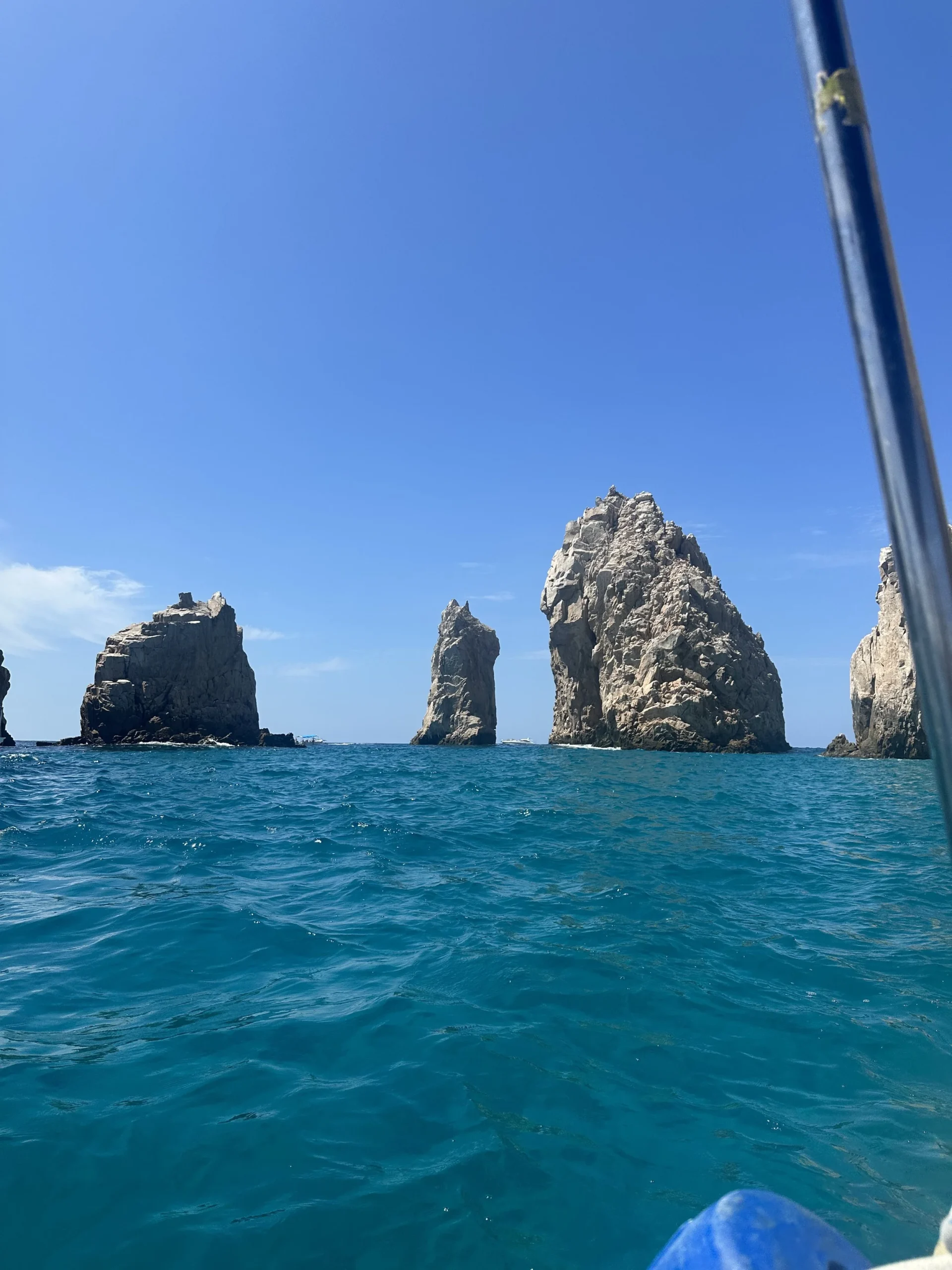 We did, however, take an excursion with Cabo Paradise Tours with an Amazing Captain a glass bottom boat, Chicago (note: the glass bottom is a rectangle in the middle of the boat). It was a 45-minute boat tour of the famous Arch, lover’s beach, and divorce beach, and at the end they dropped us off at a swimmable beach. I loved, loved this tour! This was probably our favorite part overall. The ocean is so, so clear, you can see all the tropical fish swimming around even without the glass bottom. We saw sea lions asleep on the rocks in the ocean, pelicans swimming alongside us, a sea lion swimming around. The arch is so beautiful in person and the swimmable beach had clear, calm waters and golden sand. I highly recommend doing this excursion. To get back from the beach, we ordered an Uber and it cost us, with a tip, $15 to get back to the hotel.