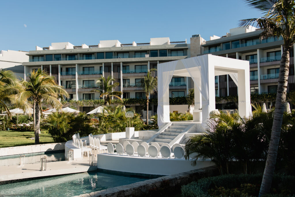 You can’t talk about planning your destination wedding without considering your backup venue options in the event of bad weather. Majestic Elegance Costa Mujeres gets this right. Their ballroom is gorgeous and clearly designed with weddings in mind. It doesn’t feel like a convention center used as a backup wedding venue as an afterthought. The terrace attached to the ballroom can also be used as either a ceremony or cocktail hour space. When you have dedicated so much time and money to having your dream wedding, you want a weather backup option that still feels luxe.