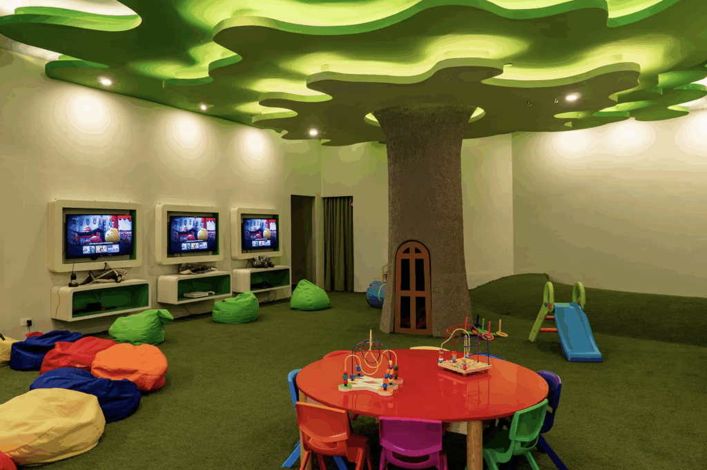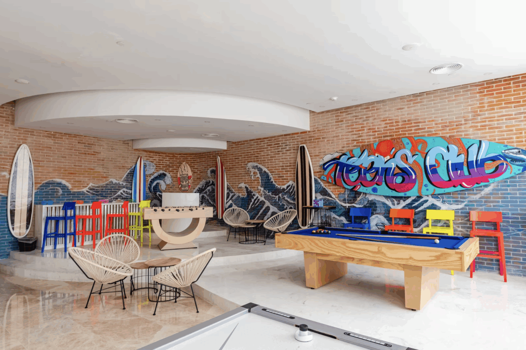 Club guests can access the family side, but not the other way around. That means if you have a mix of adults and families joining you, you should definitely reserve rooms in both areas so that everyone on your guest list gets the experience that is right for them.