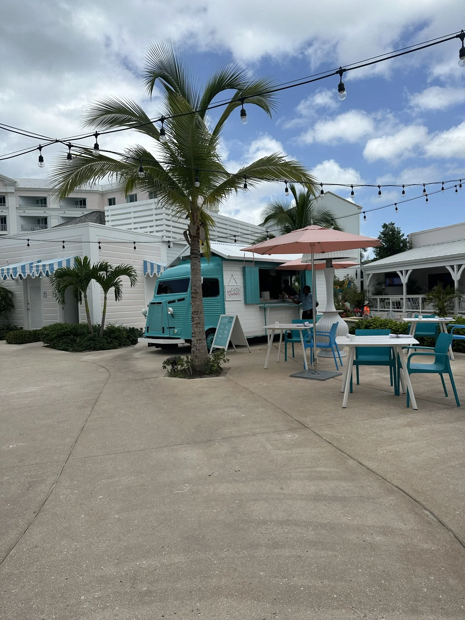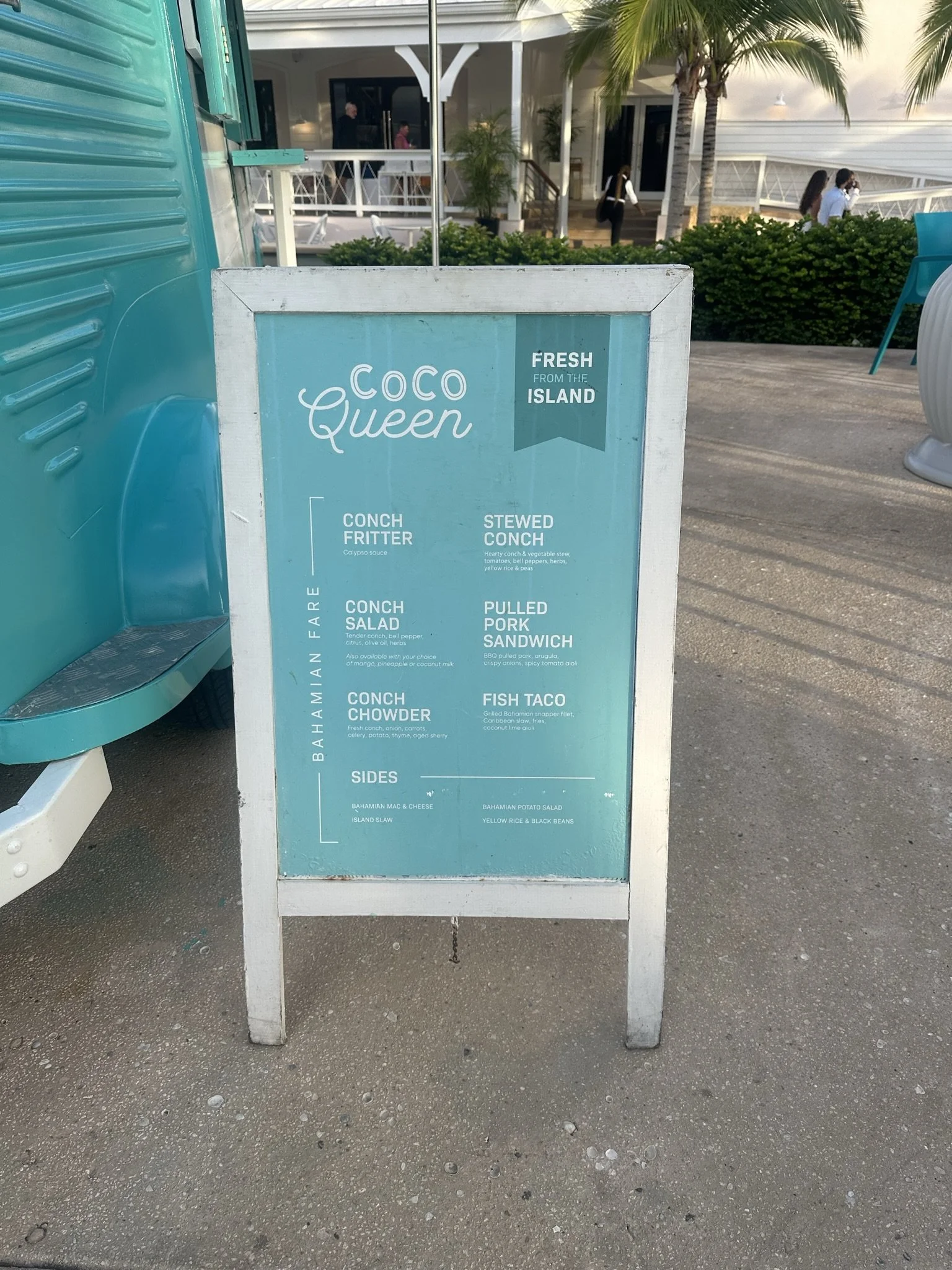 The food was delicious. For breakfast, we tried Le Plume and Kanoo, then did room service on our last day. For lunch, we had the Coco Queen food truck and Tesoro. At Coco Queen, we had the conch fritter, conch salad, fish taco, and Bahamian mac and cheese. Oh my goodness, the Bahamian mac and cheese was so good! Everything we had at the food truck, we enjoyed. The food trucks are so good and conveniently located. I loved this touch! The pizzas at Tesoro were great, as well.