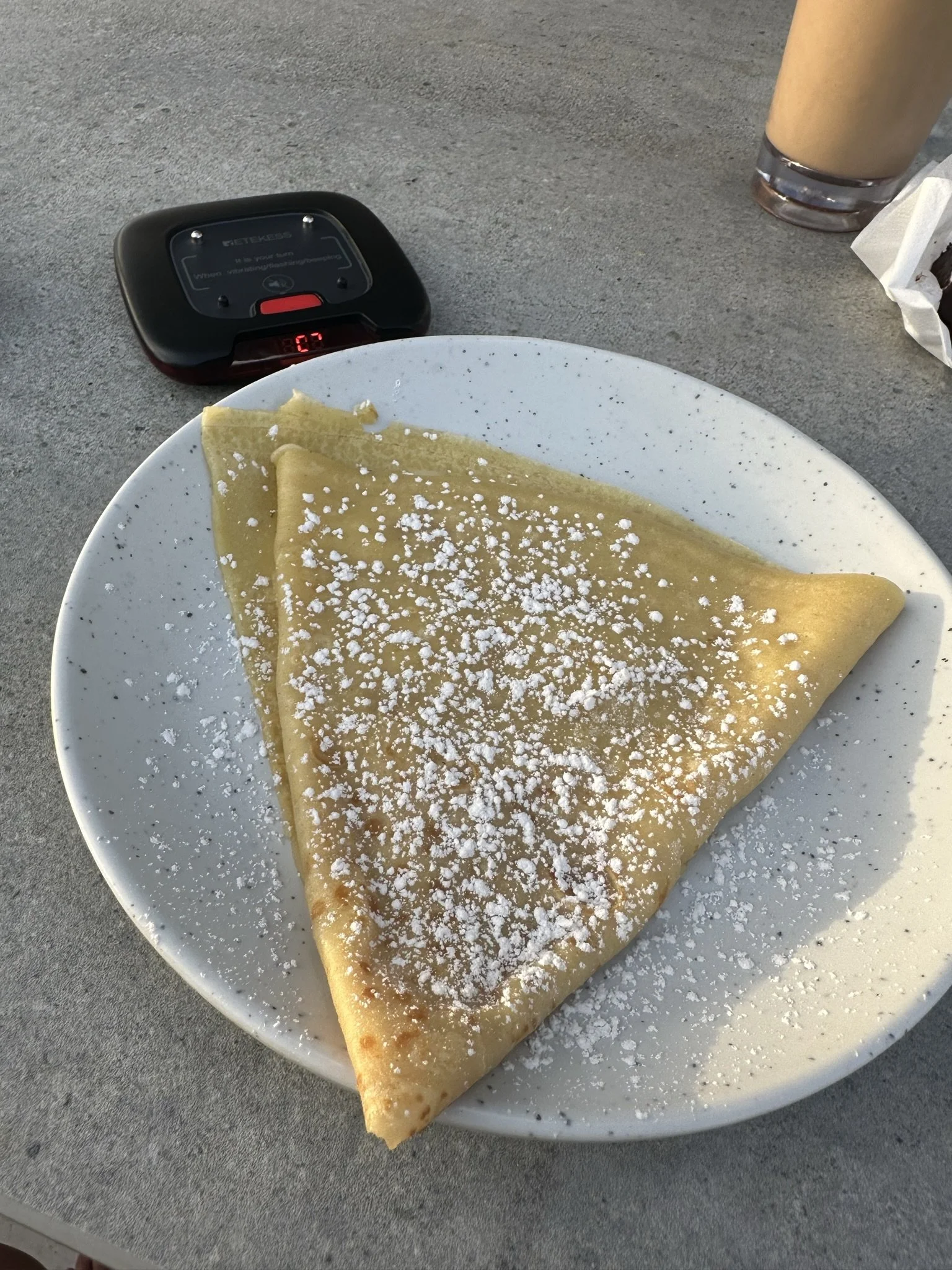 At Gordon’s, the best thing was the sunset we got to watch from our seats and the scallops appetizer. Wow, just wow – both of them! We had the pan-seared swordfish and the surf and turf. Both were great, but the real highlight was definitely our view and the scallops. We opted out of dessert and got crepes at the food trucks instead. Check out this sunset view from dinner!