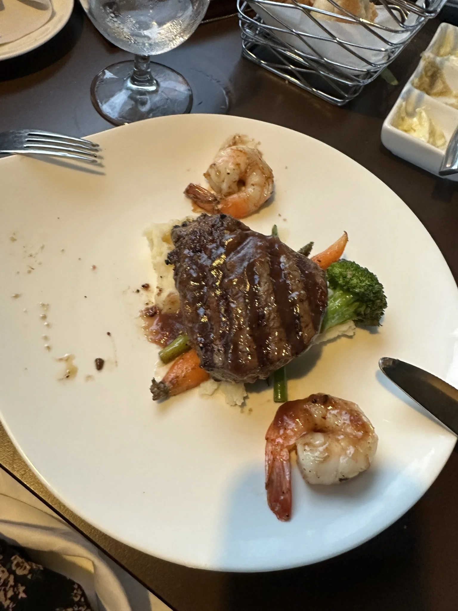 At Butch’s we had the crab cakes as a starter and they were on point. Our entrees were the Lamb Chops and T-bone steak and I definitely recommend the Lamb Chops. I asked for the Diane sauce and didn’t love it. For dessert, we had the Willy Wonka Creme Brulee, which sounds weird but was good and the Chocolate Sin Pie, but the Creme Brulee was better. Overall, a great dinner.