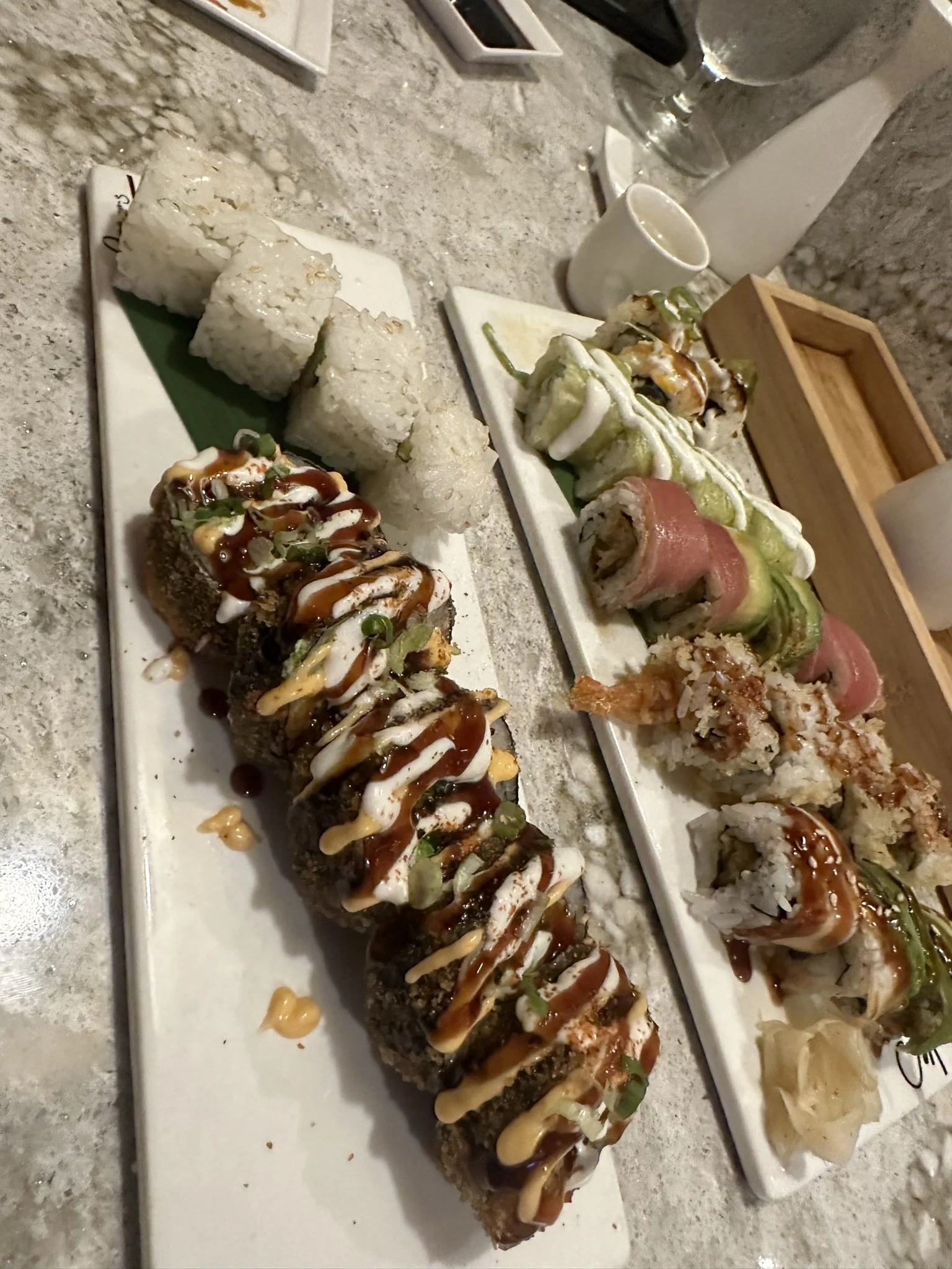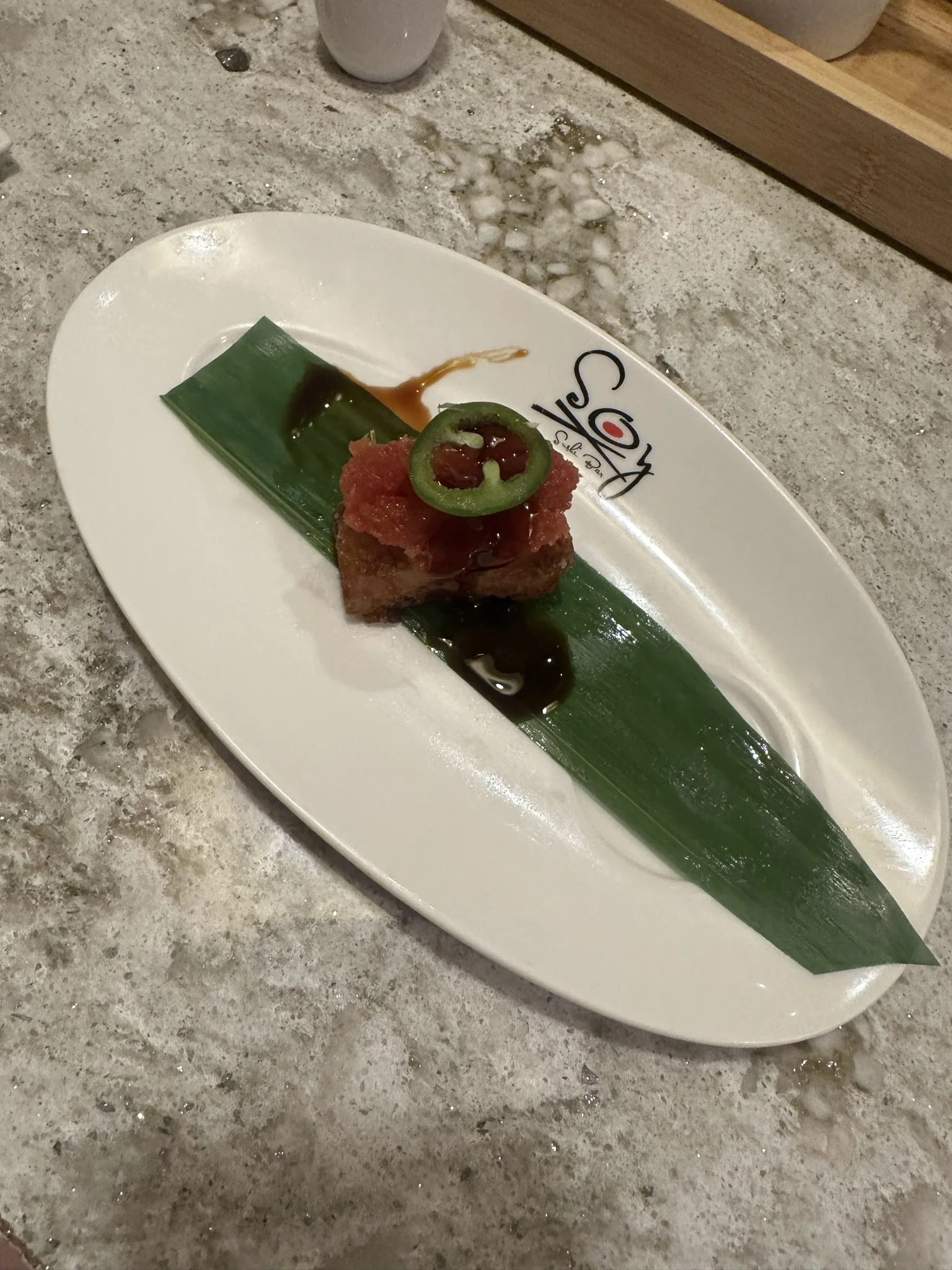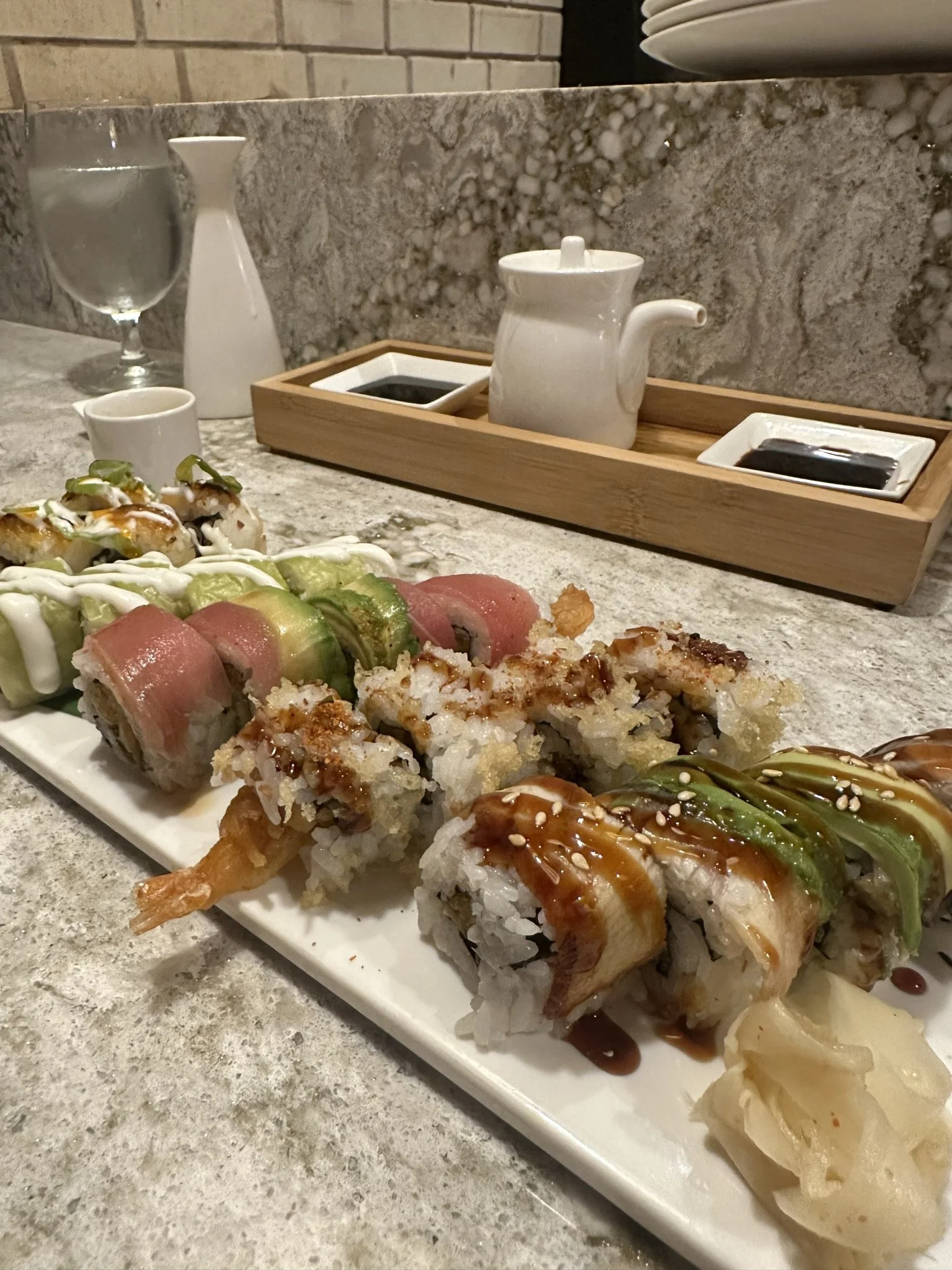 Soy was so, so good. Our sushi chef was staying at the Bahamas for two years from Japan. The chefs were very nice and didn’t take too long to get our food. We couldn’t decide which sushi rolls we liked best because they were all so good! Definitely try the Crispy Rice Spicy Tuna appetizer, we ordered it twice. I normally don’t like fried sushi rolls, but the Futo Maki Roll was great. We tried both the Exotic Fruit Plate and Yuzu Cheesecake, but we only liked the Exotic Fruit Plate.