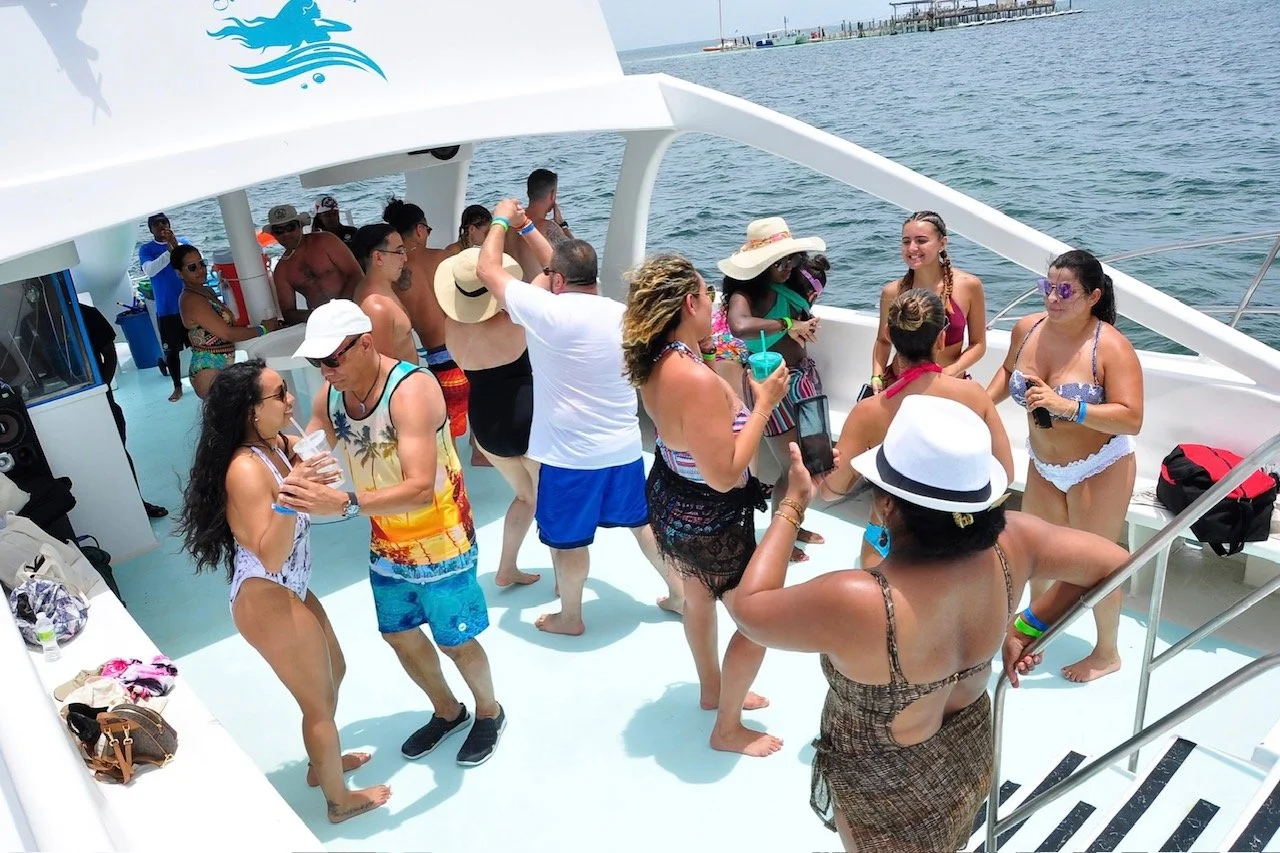 We were picked up at the lobby of our hotel around 11:30a and taken to a different part of the beach where the boat was docked. We opted for the open bar with some light snacks and it was perfect for the 3 hour party. The drinks were strong, the DJ had everyone dancing, and the views were incredible.
