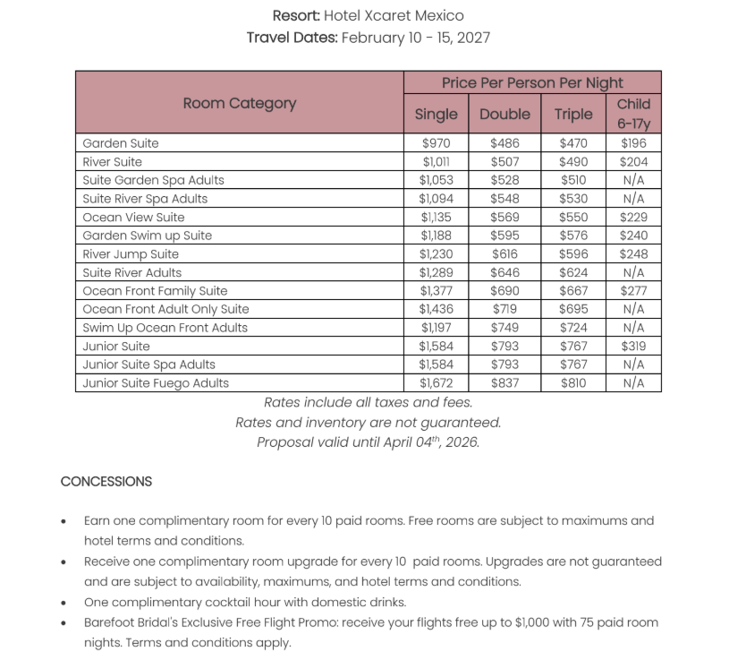 As soon as the hotels get us the rates, I’ll update this section for you. This way, you’ll have the rates and concessions for all the hotels in one spot and can easily compare.