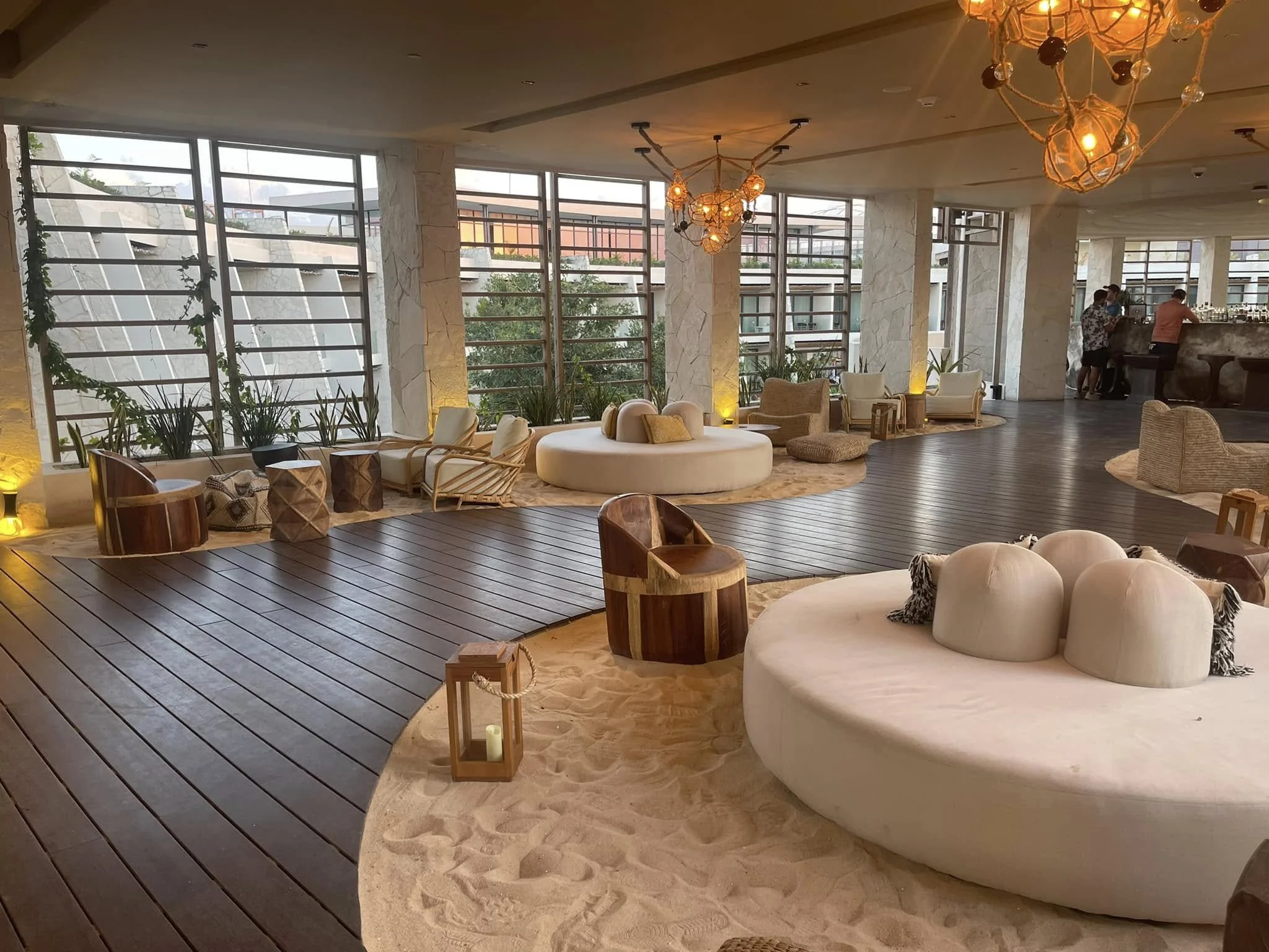 The lobby bar serves as a stunning sight when you first walk into the resort, adorned with warm-lighted lanterns and bordered by sand that create an inviting and intimate ambiance. This was a beautiful space for a nightcap.