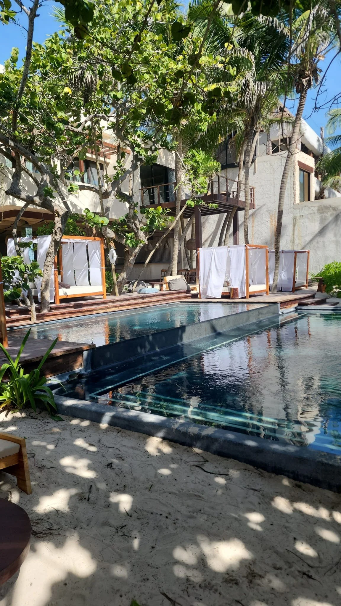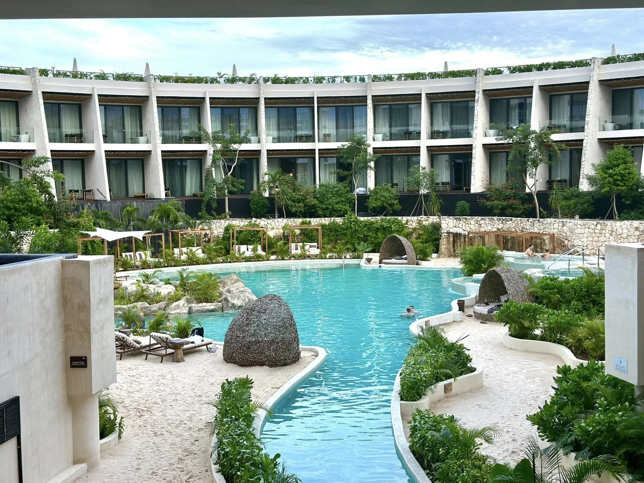 The centerpiece of the main resort is its network of cenote-inspired pools linked by a lazy river. Soft sand surrounds the pools, dotted with comfortable loungers and eye-catching bird nest chairs. The beach club area also has its own pristine infinity pools. However, the pools are not heated, which made them a bit too chilly in December. Furthermore, the hot tubs were unfortunately out of service during our stay.