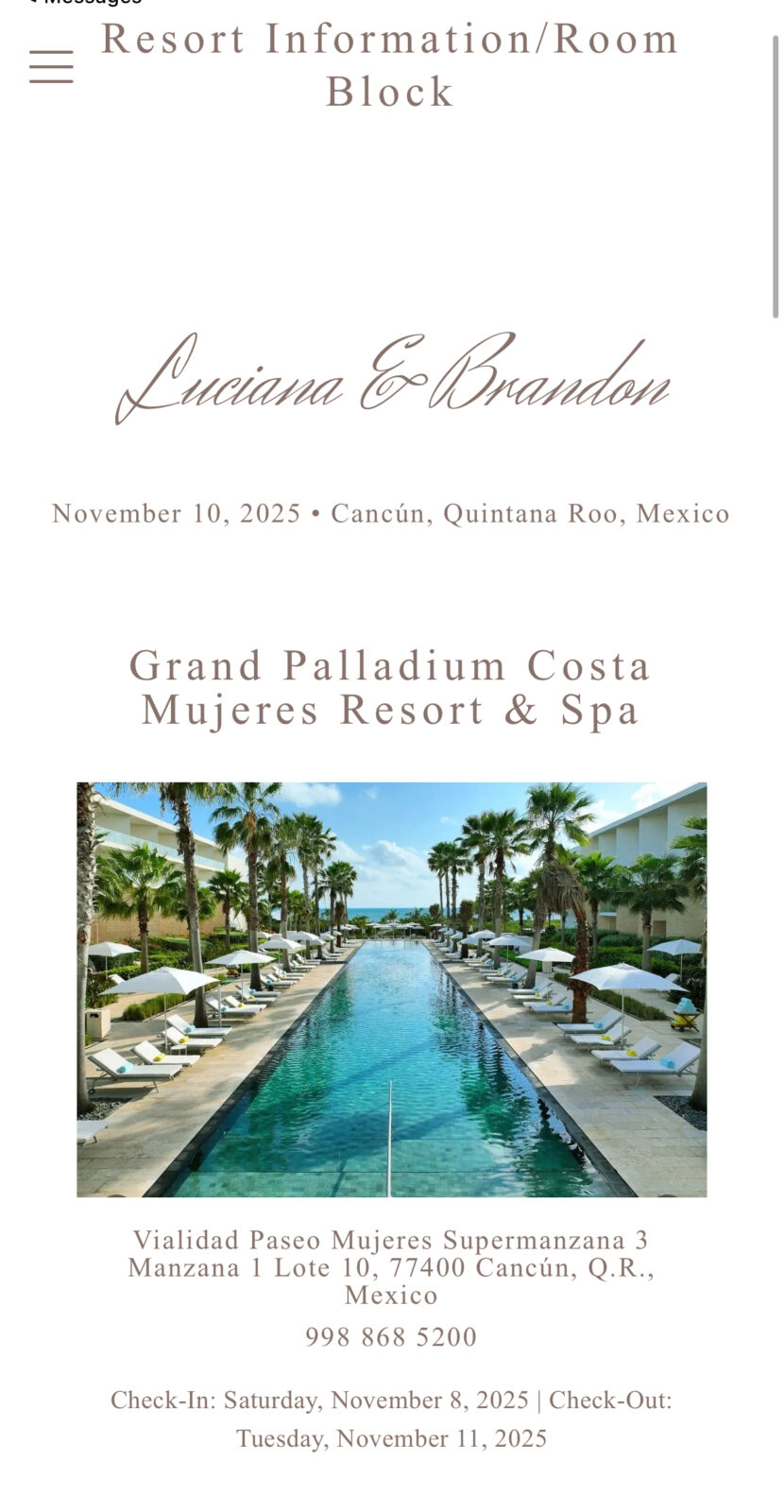 One thing I’m really glad we did for our destination wedding was set up a room block. Before planning, I had no idea how helpful that actually is. Barefoot Bridal handled the whole thing for us, and that took so much pressure off me. I knew I didn’t want to be chasing down prices or checking availability for every single guest. With the room block, everything was locked in, and our guests had a smooth and organized way to book.