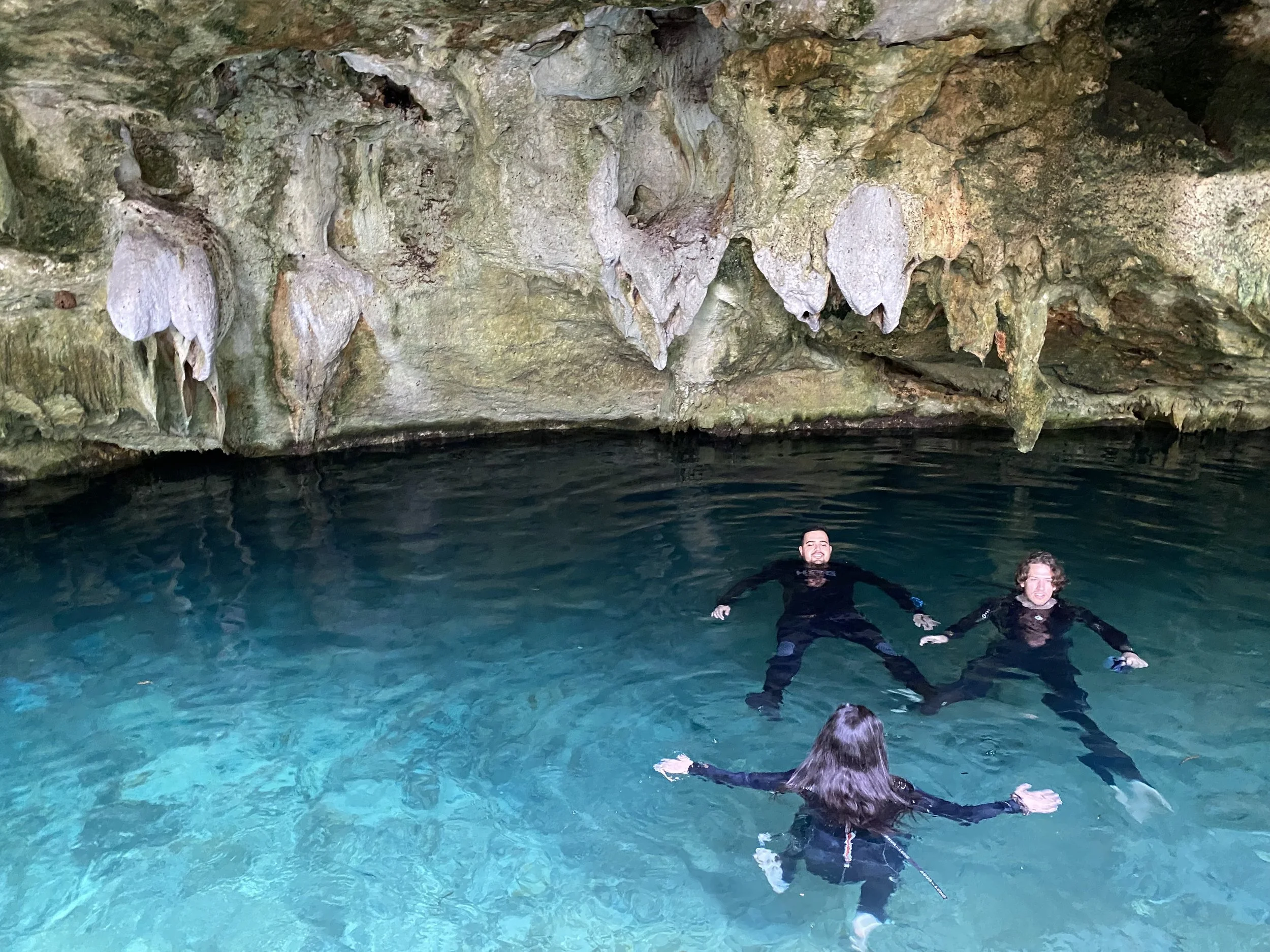 When we arrived in Playa del Carmen, we walked through the streets of the city. Overwhelmed by the cleanliness and the cultural charm, we immediately knew that this would become a special place in our own love story. Hand in hand we strolled through the streets and while daylight turned to darkness, we were amazed when the city lit up even more brilliantly. The vibrant atmosphere, friendly people, and beachy air welcomed us again and again, as we came into town every night of our trip to try all of the fun new places! There were many wonderful restaurants we tried and the tequila was certainly flowing. As a tourist destination, some of the restaurants were a little pricey but they all had their own interesting aesthetic that justified any price tag. And while the vibey restaurants of Fifth Avenue were great, we really got some of the best service, food, and coffee at places that were a little off the beaten path. The shops offered the perfect mix of souvenirs for our family, handmade trinkets, beautiful clothes, and cool digital experiences. In addition to enjoying the walk down the main street every day, we also got to check out the party scene and let me tell you – it was unmatched! We partied at Coco Bongo, a super cool aerial show and immersive club experience, we went to a variety of bars and clubs that had amazing music and lively, open spaces. And of course, we dabbled in some of the late night food options before heading back to the resort.