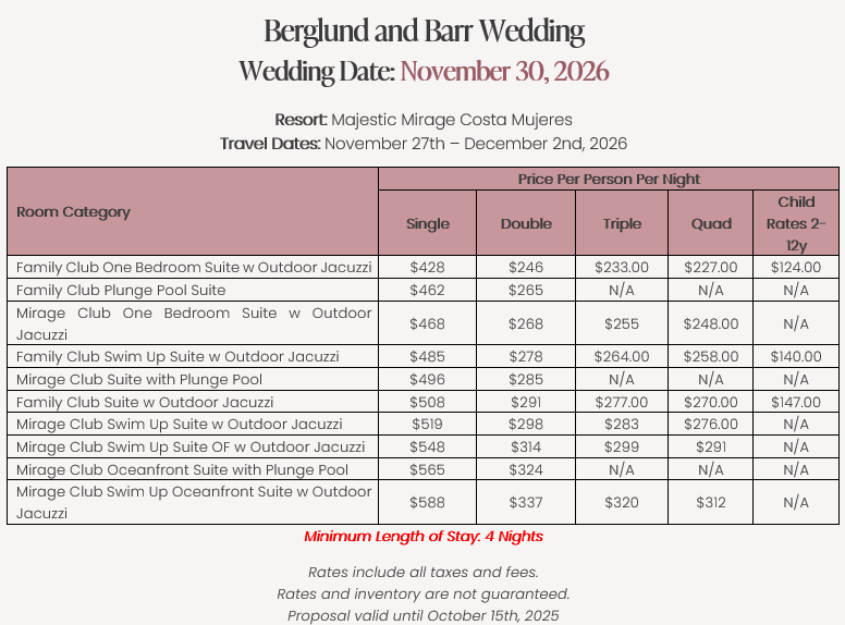 With a decade of expertise and thousands of happy brides, we offer unparalleled connections with wedding and groups departments. Our custom-developed program ensures seamless guest coordination, and our passionate team is dedicated to making your destination wedding unforgettable